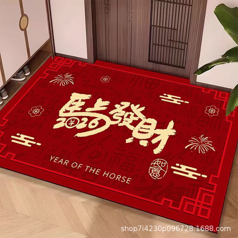 新款马年红色入户门水晶绒材质地垫耐磨脚垫玄关大门口耐脏地毯
