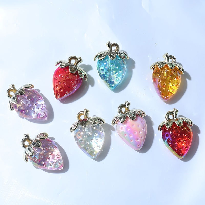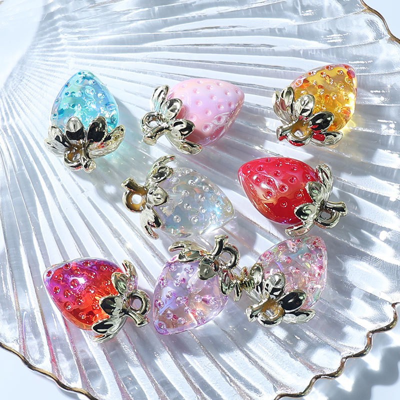 批发镀彩亚克力透明果冻草莓挂件吊坠diy手机链钥匙扣包饰手链配