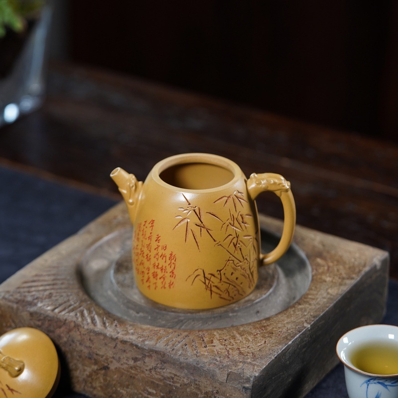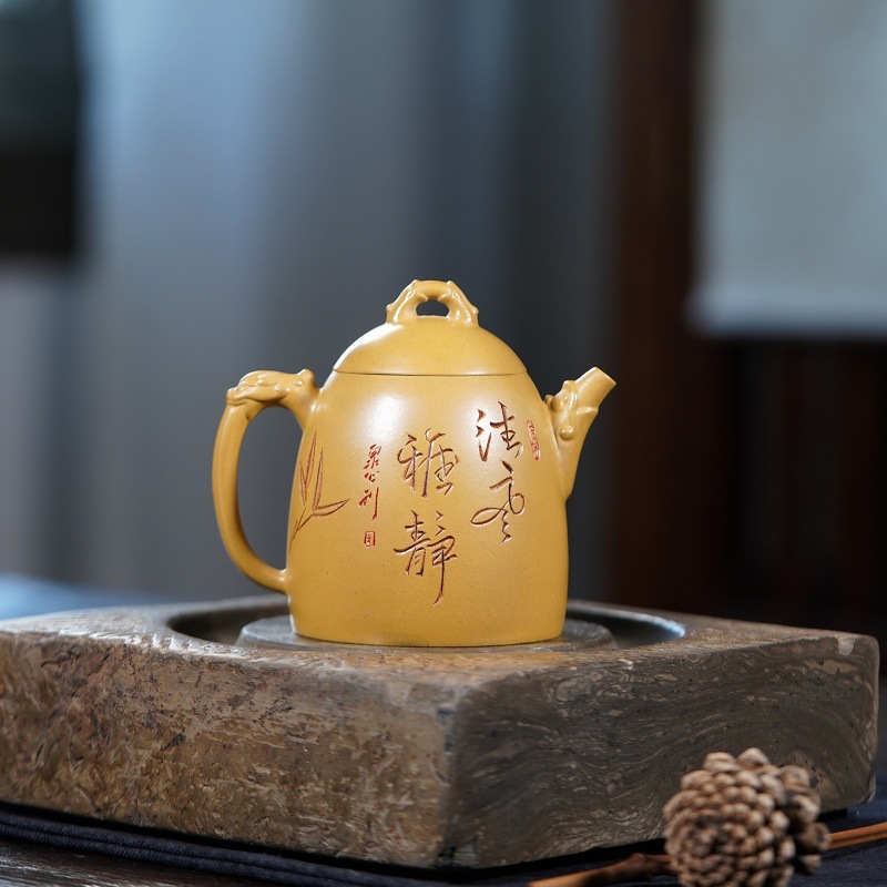 宜兴紫砂壶原矿黄段泥双龙秦权名家手制茶壶茶具礼品批发代发