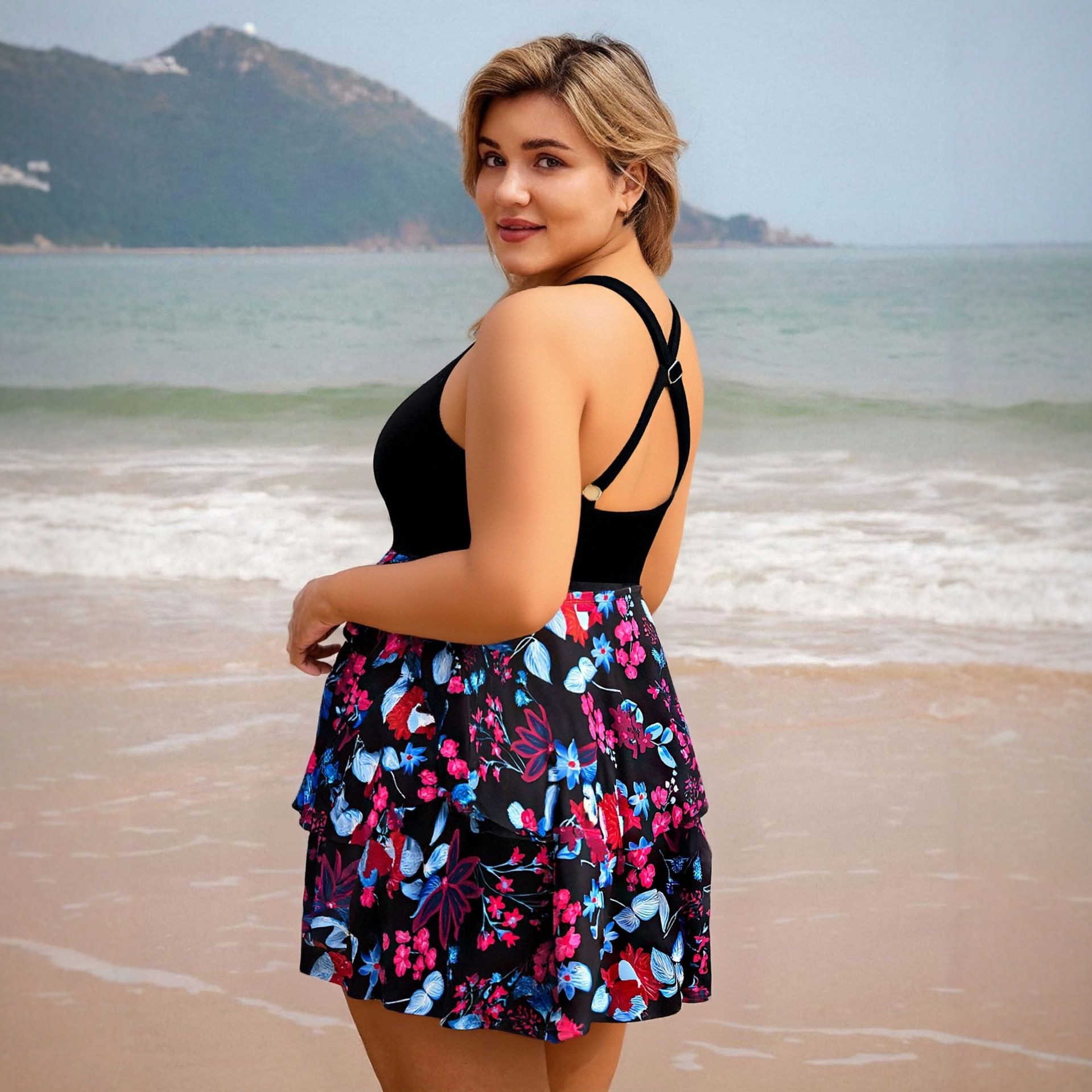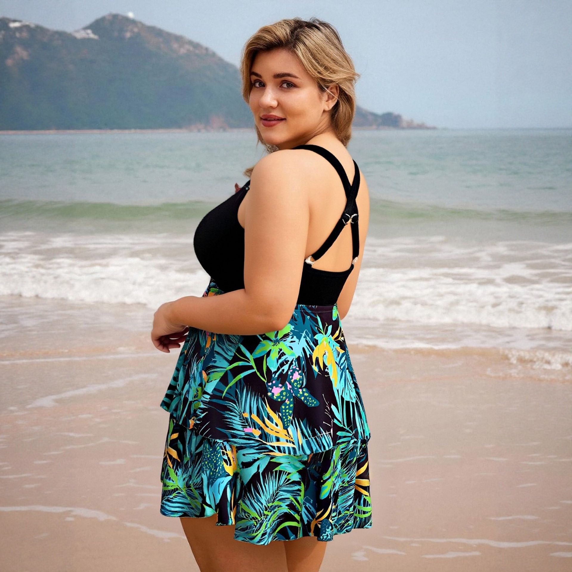 2025新款连分体泳衣女大码两件套裙式收腹印花亚马逊欧美跨境泳装