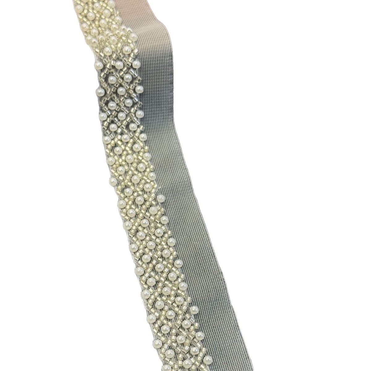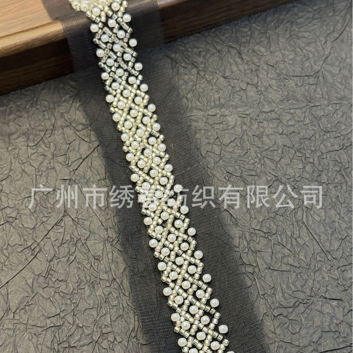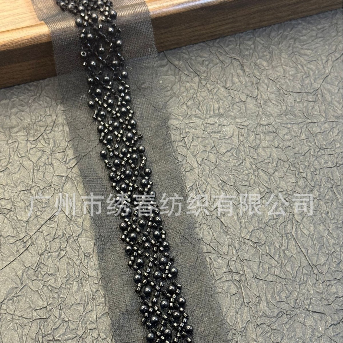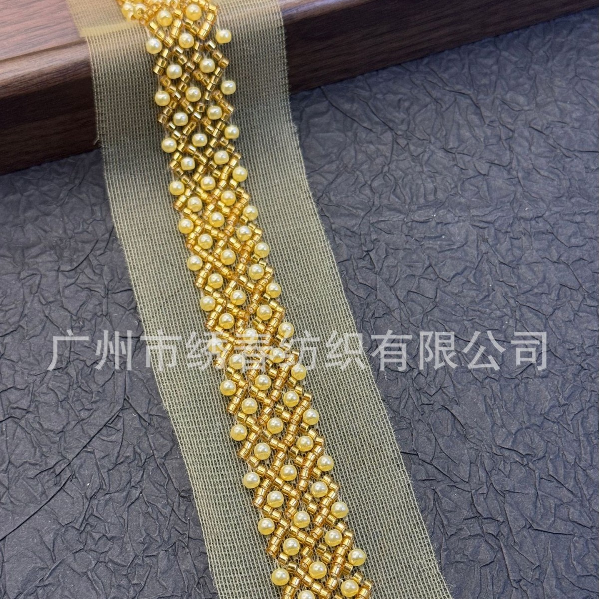 网纱钉珠花边黑白金色DIY手工服装辅料衣领米珠装饰材料珍珠花边