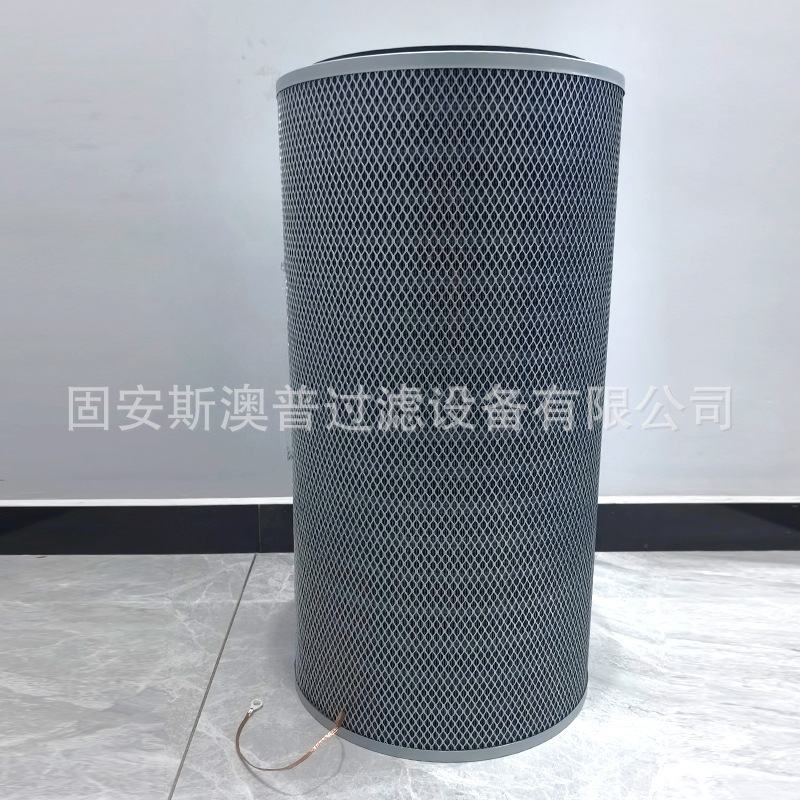 工业粉末回收炭黑防静电木浆纸除尘滤筒纳米覆膜阻燃除尘滤筒