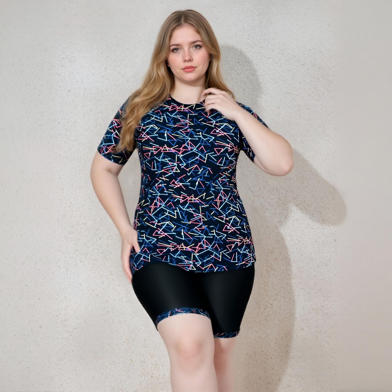 跨境加肥大码泳衣女2026新款分体平角裤款收腹遮肉欧美亚马逊外贸