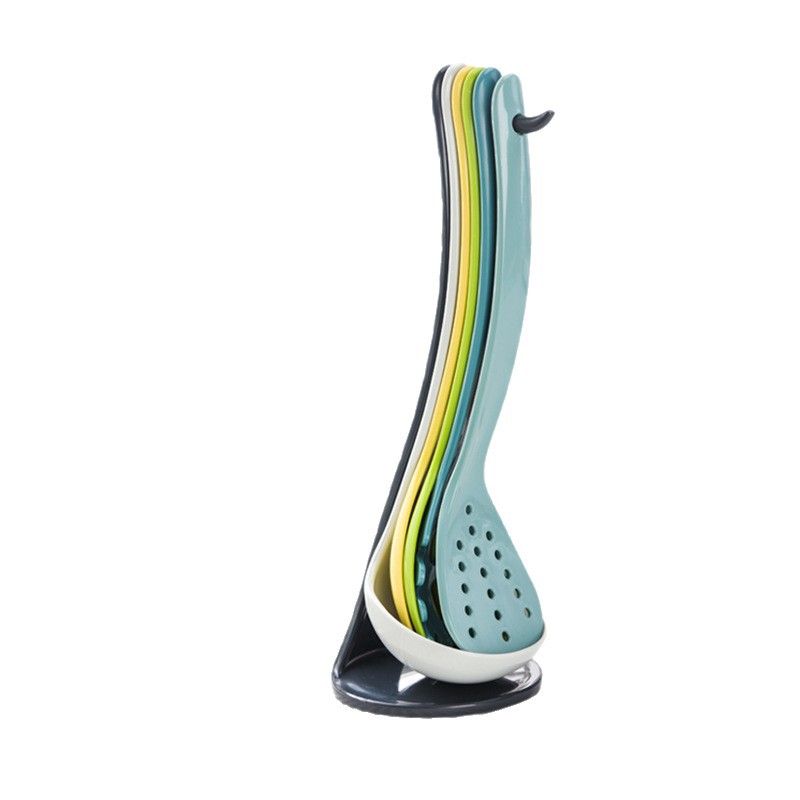 跨境简约烹饪厨具6件套可站立式塑料勺铲套件 长柄汤勺漏勺厨房用