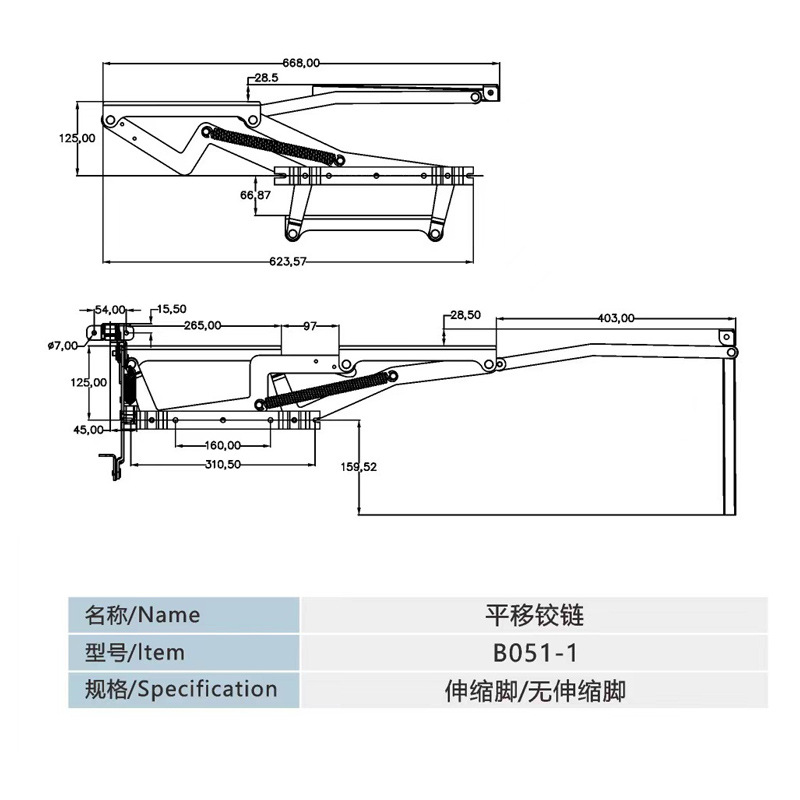 规格 | 【带伸缩脚款】B051-1平移铰链 | | 规格 | 【无伸缩脚款】B051-1平移铰链 |
