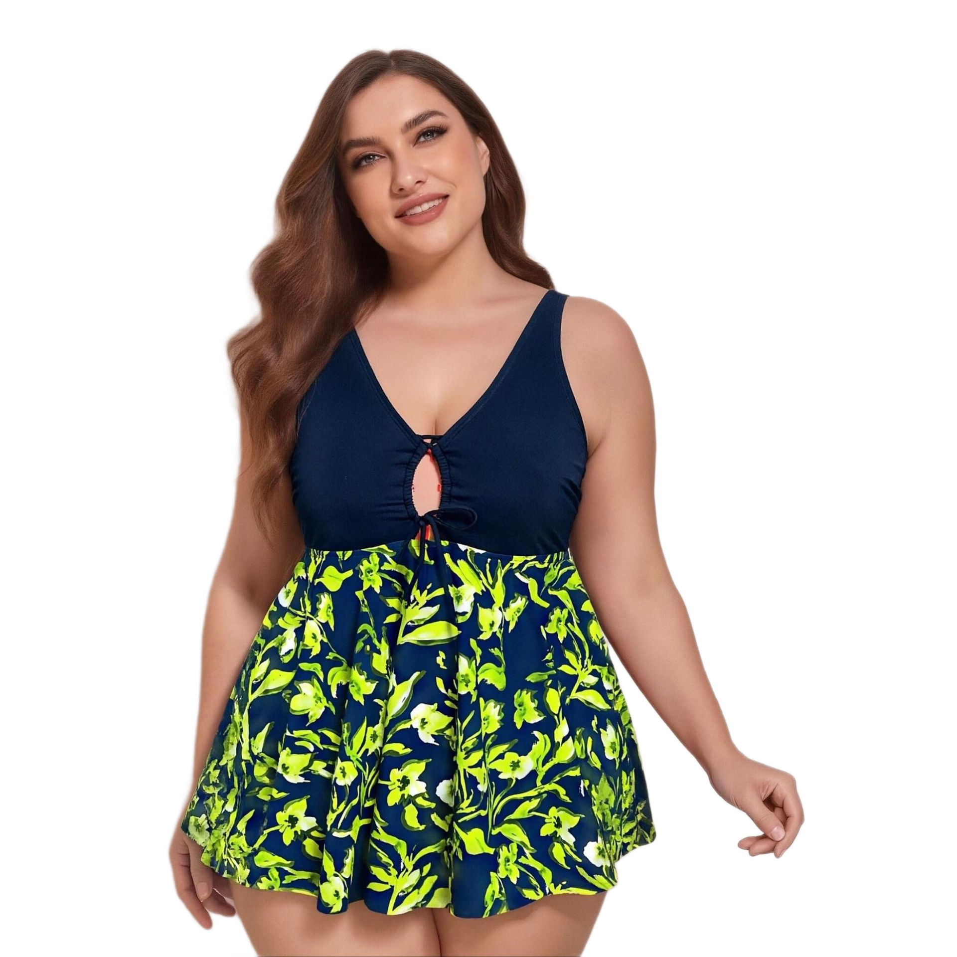 2025新款大码泳衣女连分体裙式两件套收腹印花亚马逊欧美跨境泳装
