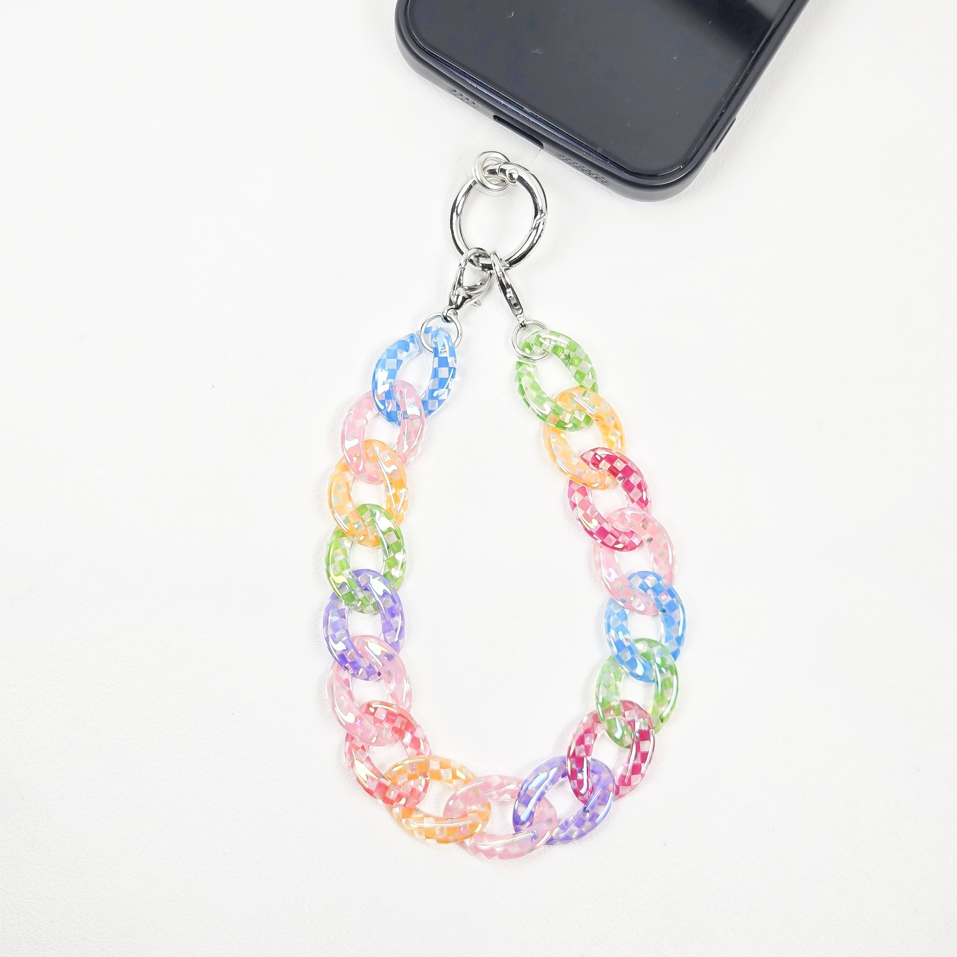 ins糖果色格子透明亚克力手机挂绳防丢男女通用手机链钥匙挂绳装