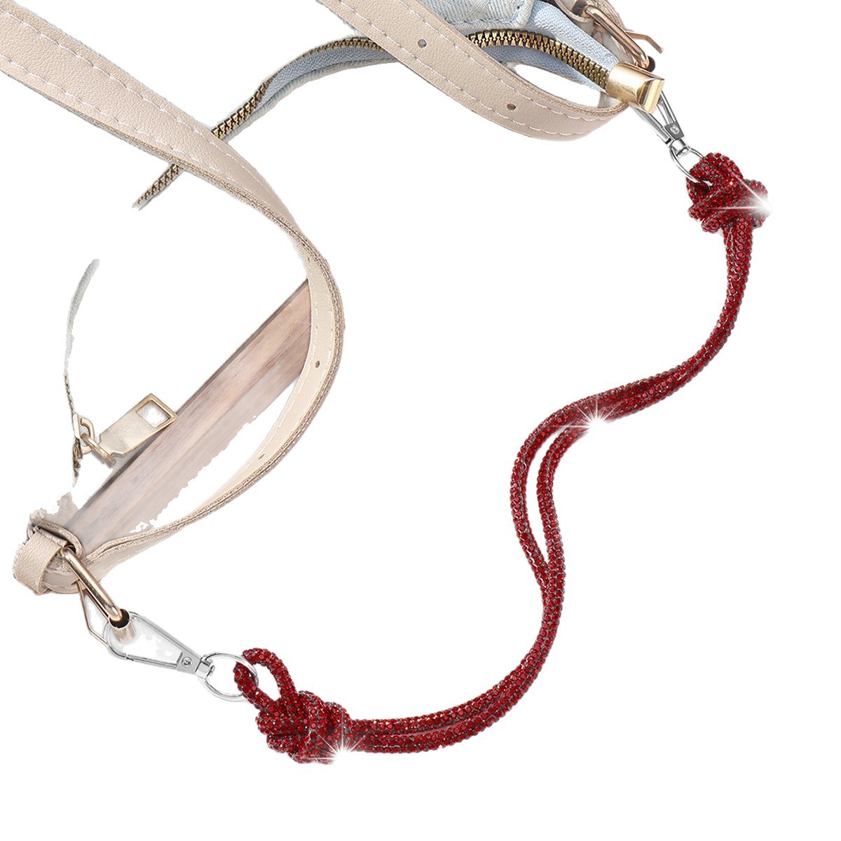 y2k时尚精致轻奢银色/红色亮闪仿水钻双条打结单肩链条DIY包挂件