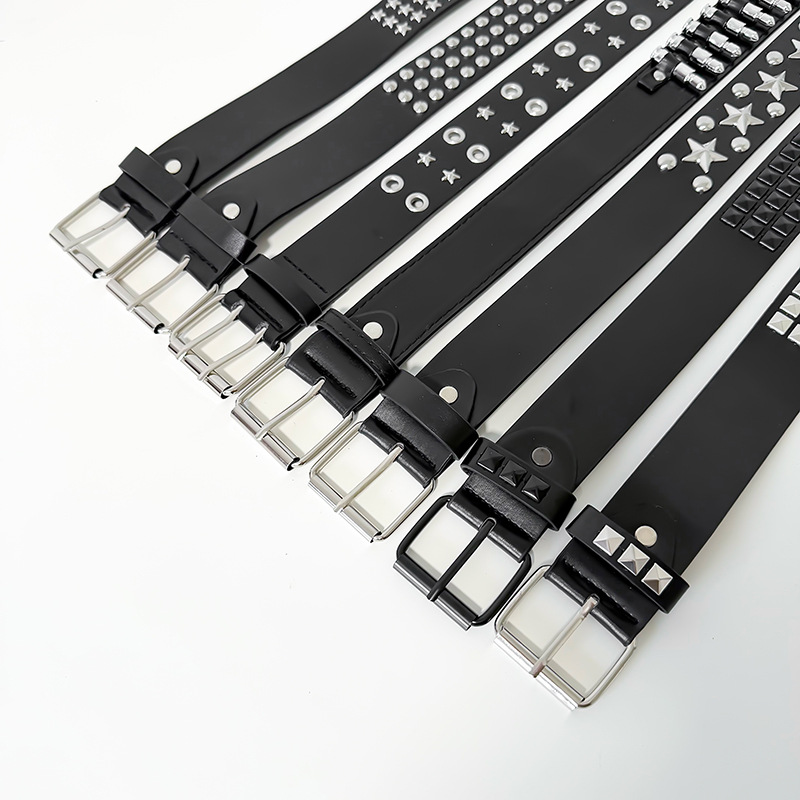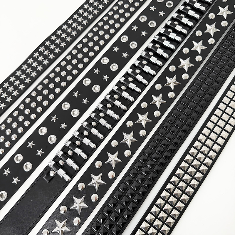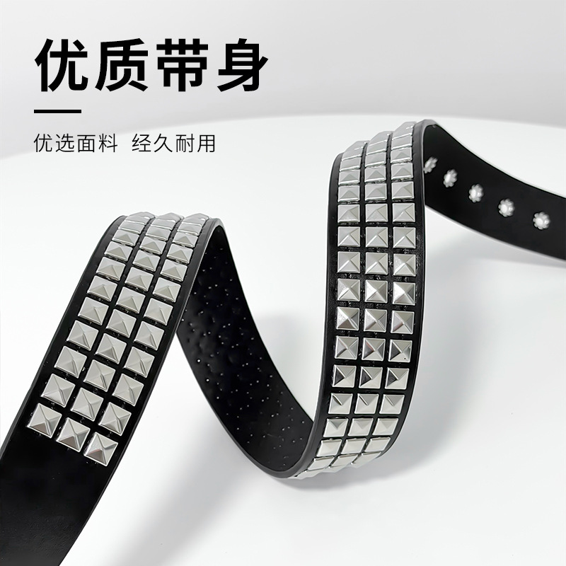 跨境欧美朋克女士皮带四方珠金字塔铆钉腰带抓珠男女通用牛仔裤带