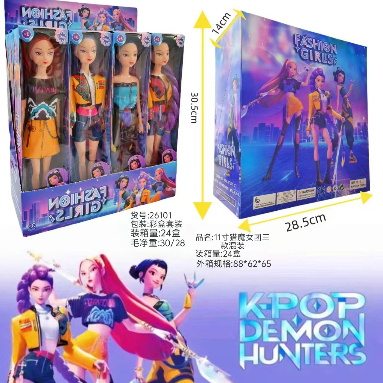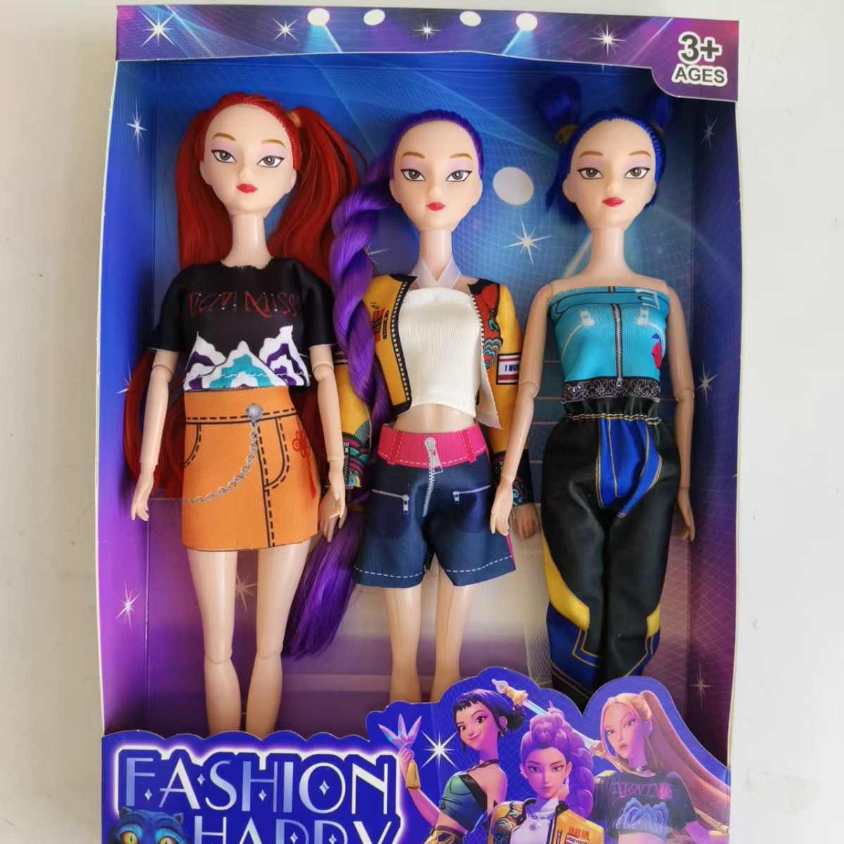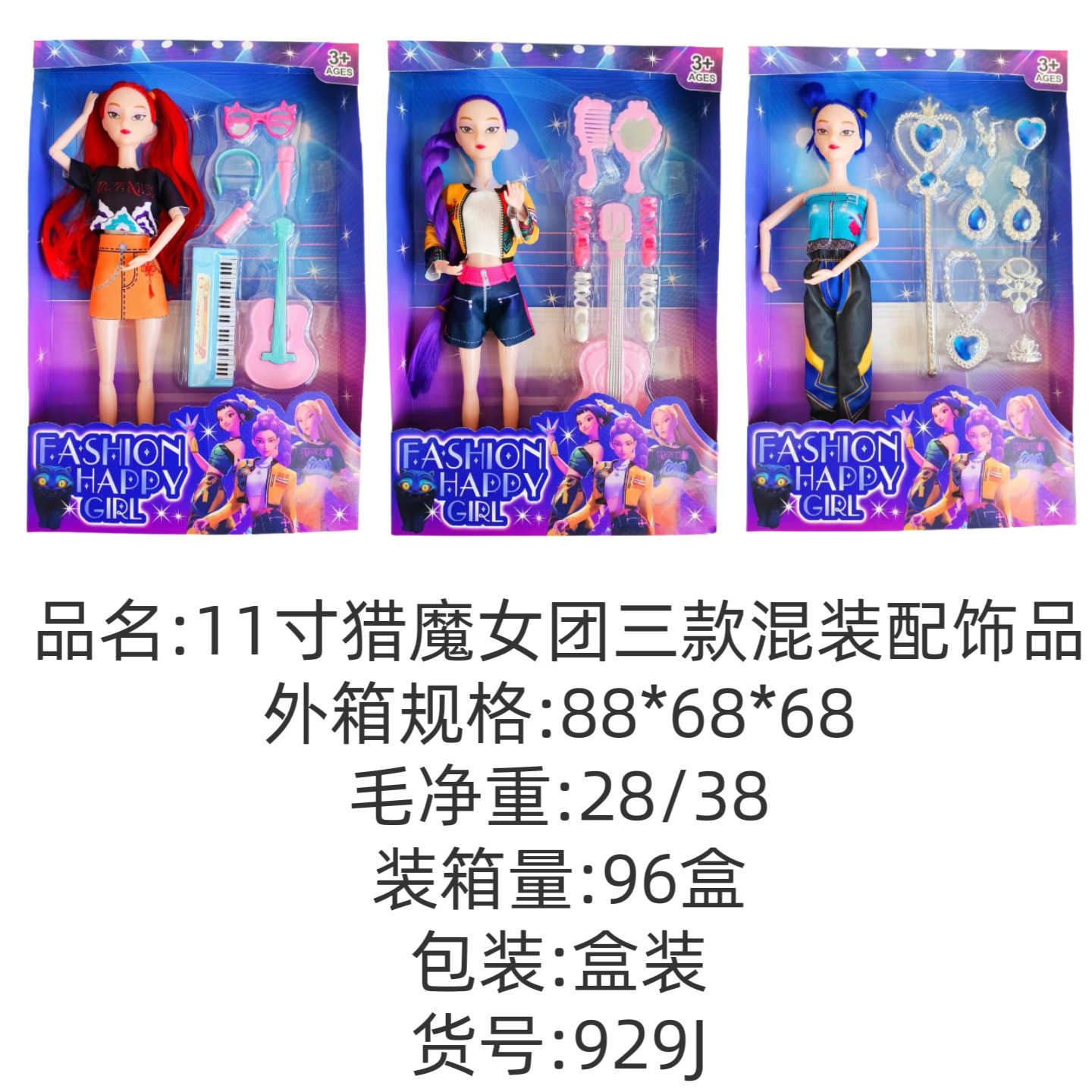 颜色 | 猎魔女团紫发女孩+吉他+梳妆套装 | | 颜色 | 猎魔女团3人装套装929(350g、 |