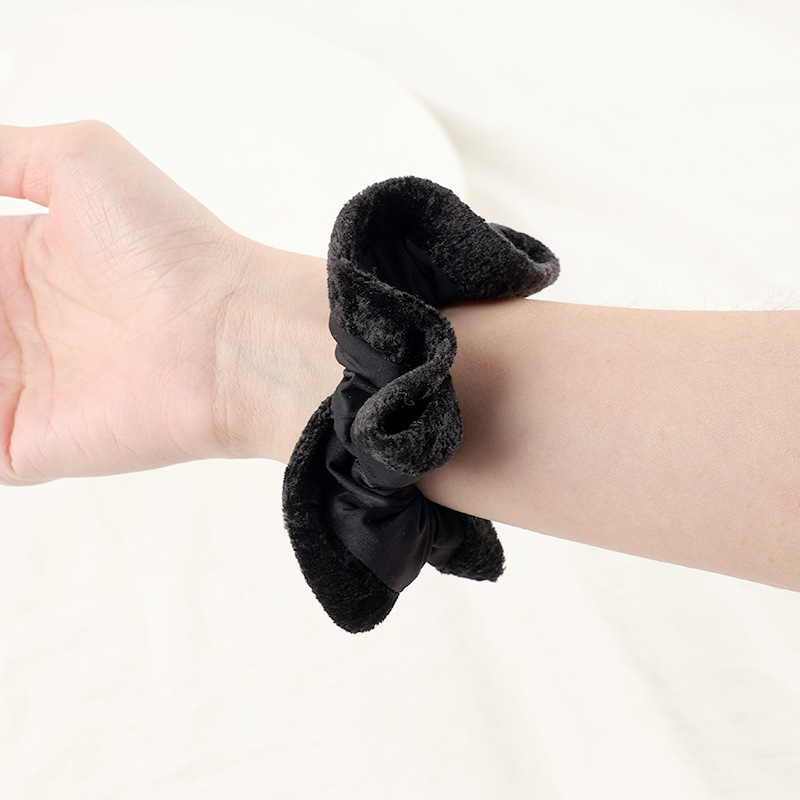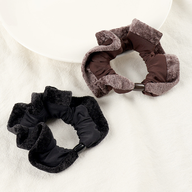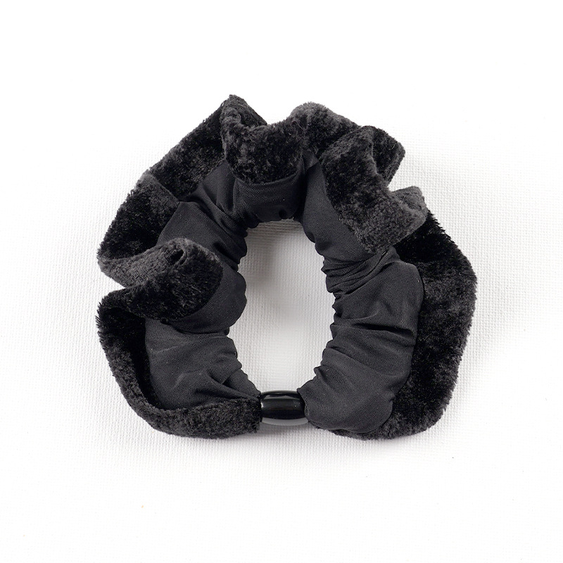 秋冬毛绒边大肠发圈柔软不伤发简约气质头绳扎马尾褶皱皮筋批发