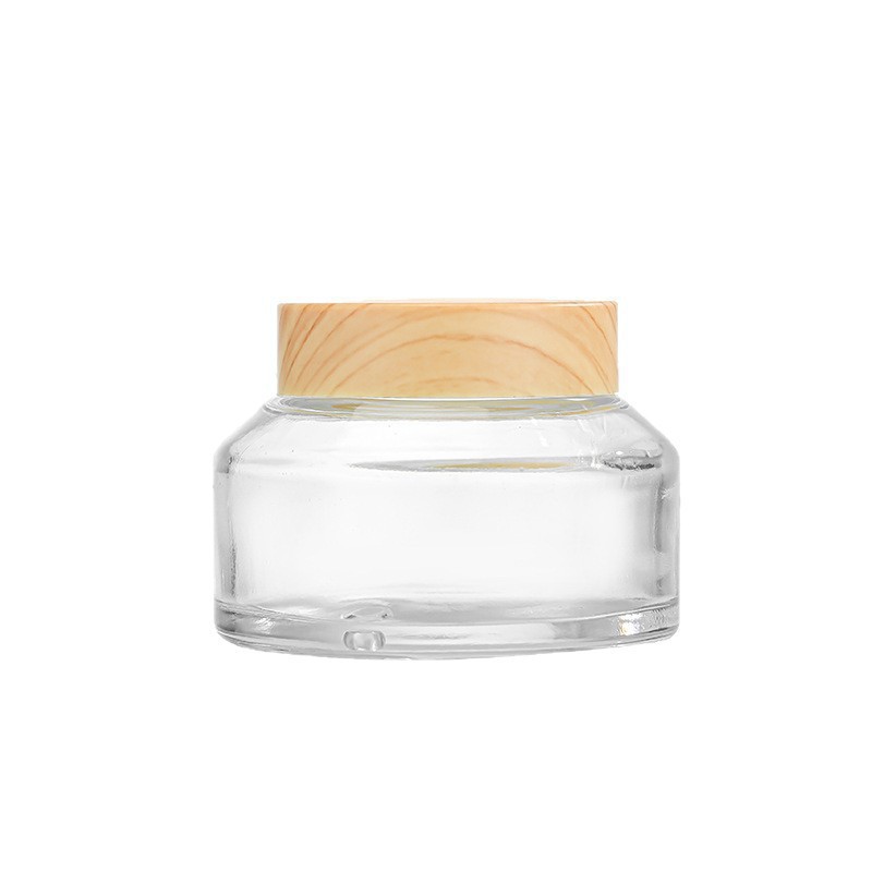 斜肩玻璃膏霜瓶100g木纹盖小样瓶金银盖面霜瓶化妆品分装瓶护肤品