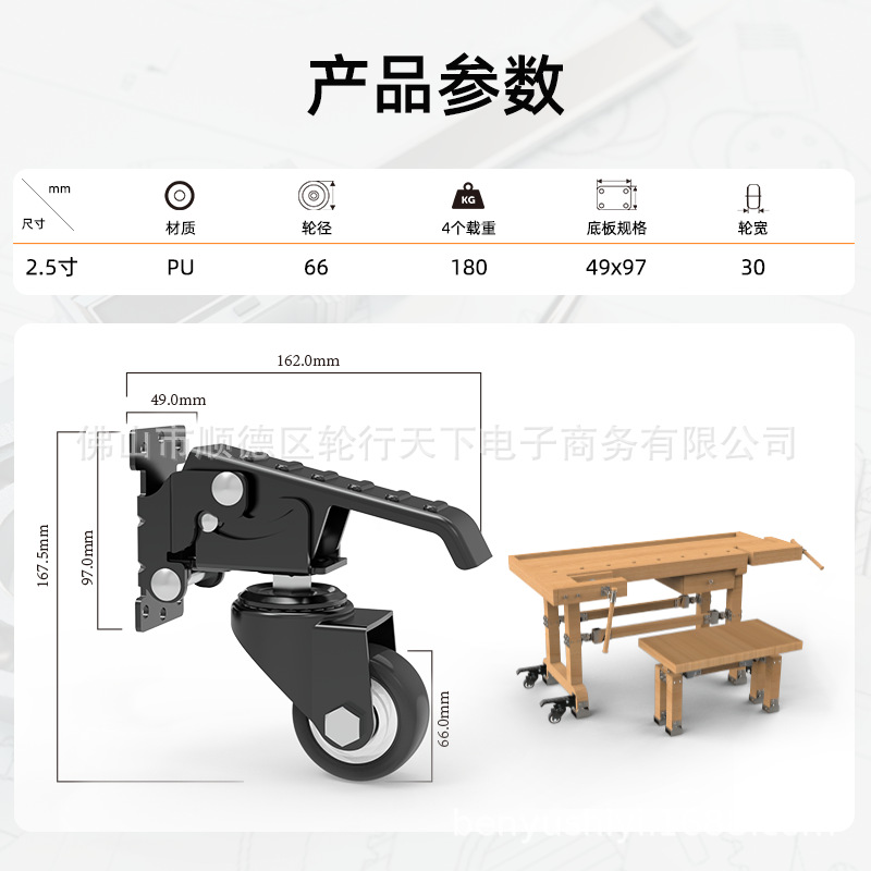 新款2.5寸起放装置脚轮顶高器工作台升降移动脚轮4个万向轮