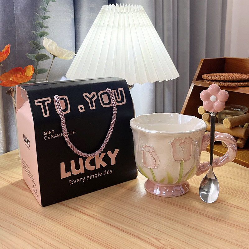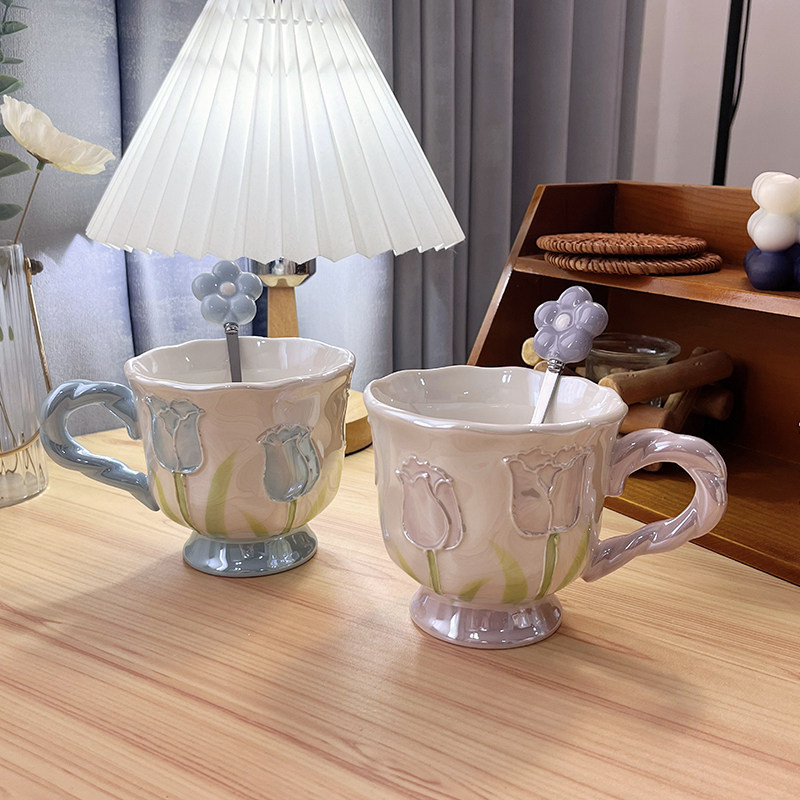 郁金香高脚杯马克杯高颜值陶瓷杯子水杯生日礼物送女生结婚伴手礼