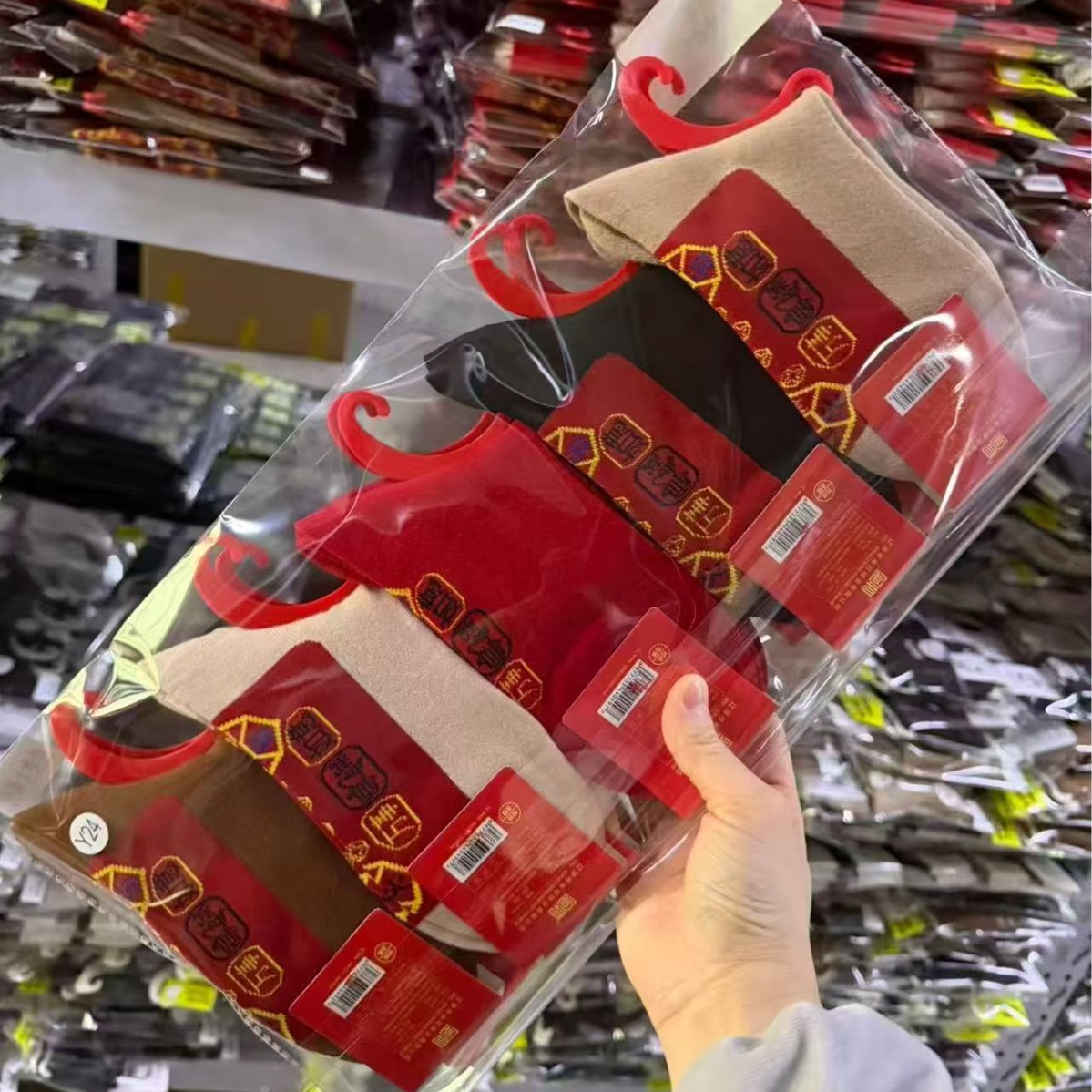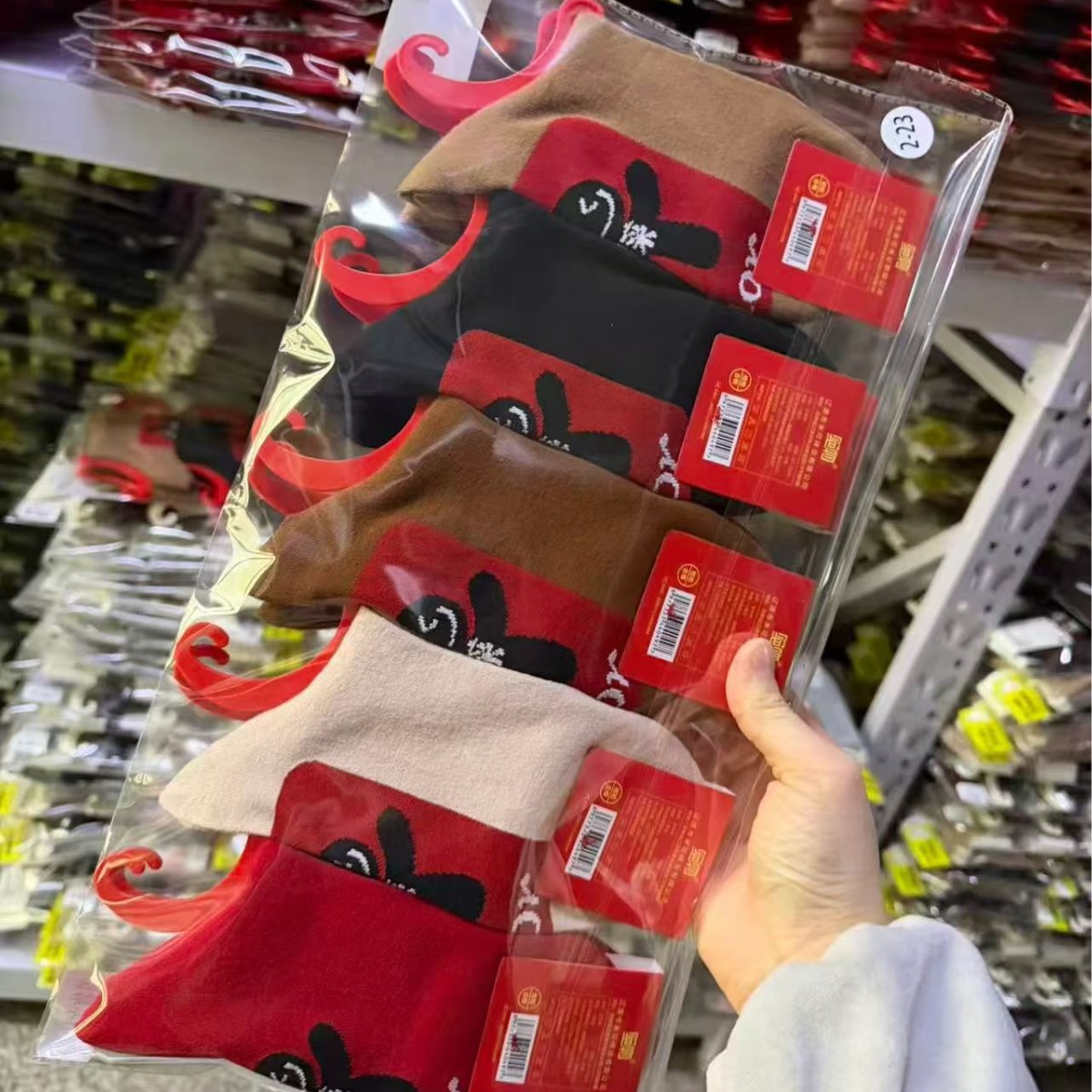 2026年马年新款脚踏七星红袜子男女运动款本命年好运棉袜批发代发