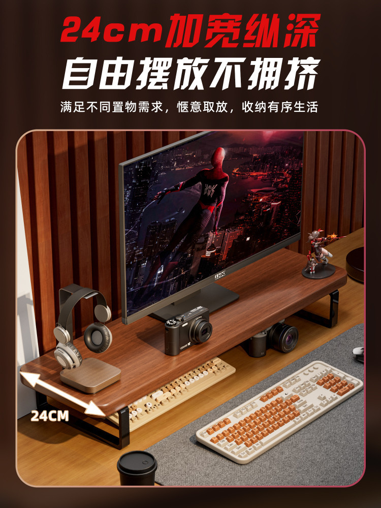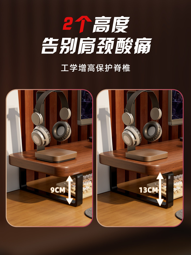 颜色 | 【升级增高款13CM骑士黑】100*20CM钢木电脑增高架 | | 颜色 | 【升级增高款13CM胡桃色】50*24CM钢木电脑增高架 |