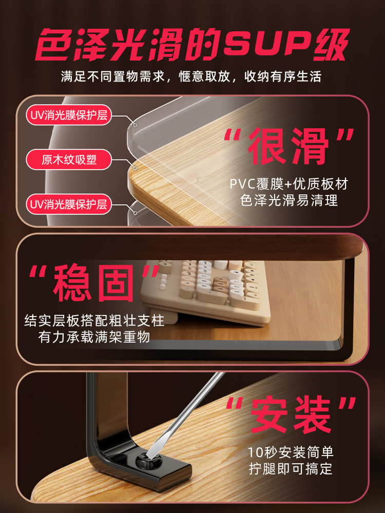 颜色 | 【升级增高款13CM胡桃色】50*20CM钢木电脑增高架 | | 颜色 | 【升级增高款13CM原木色】50*20CM钢木电脑增高架 |