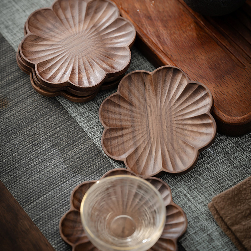 胡桃木茶道杯垫创意茶托实木功夫茶隔热垫子禅意壶承底座茶具配件