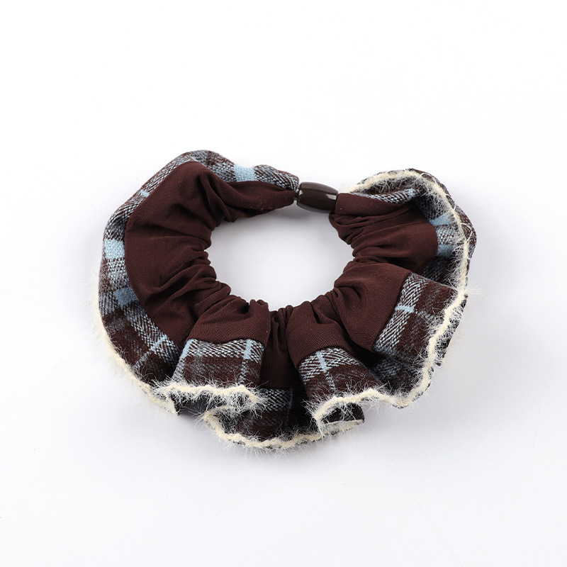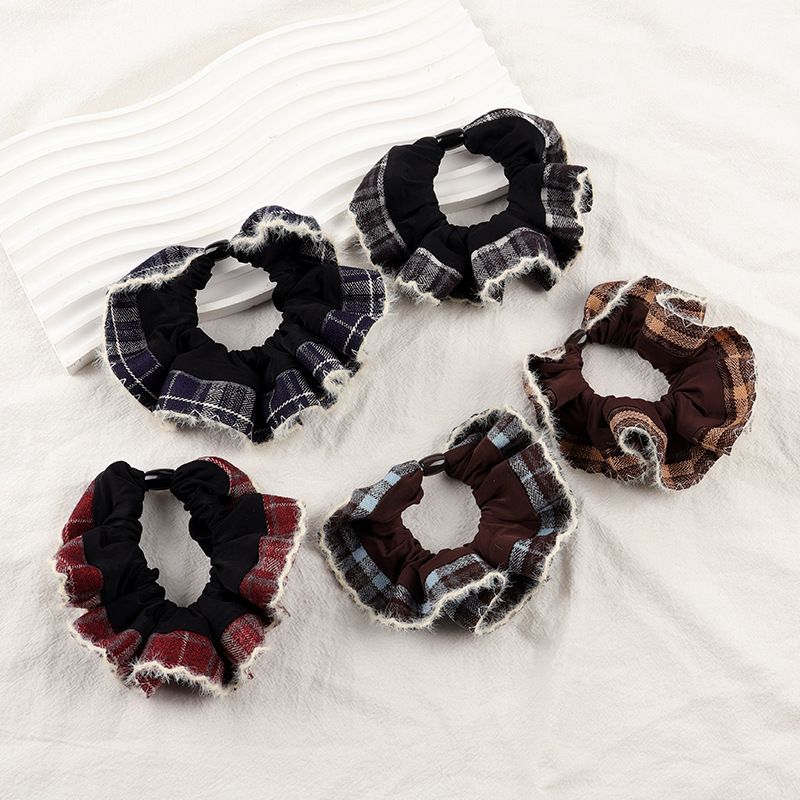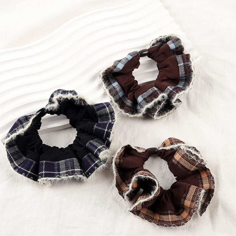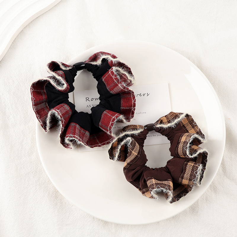 秋冬复古布艺大肠发圈柔软高弹力头绳格纹绒边发饰皮筋发绳头饰