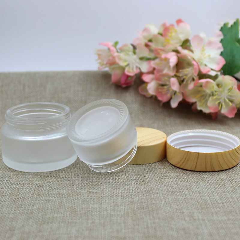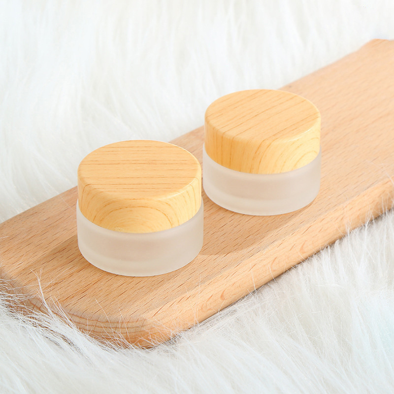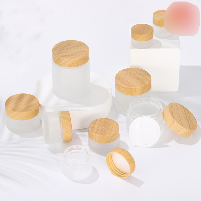 木纹盖蒙砂膏霜瓶化妆品分装瓶茶色玻璃面霜瓶可印logo便携空瓶