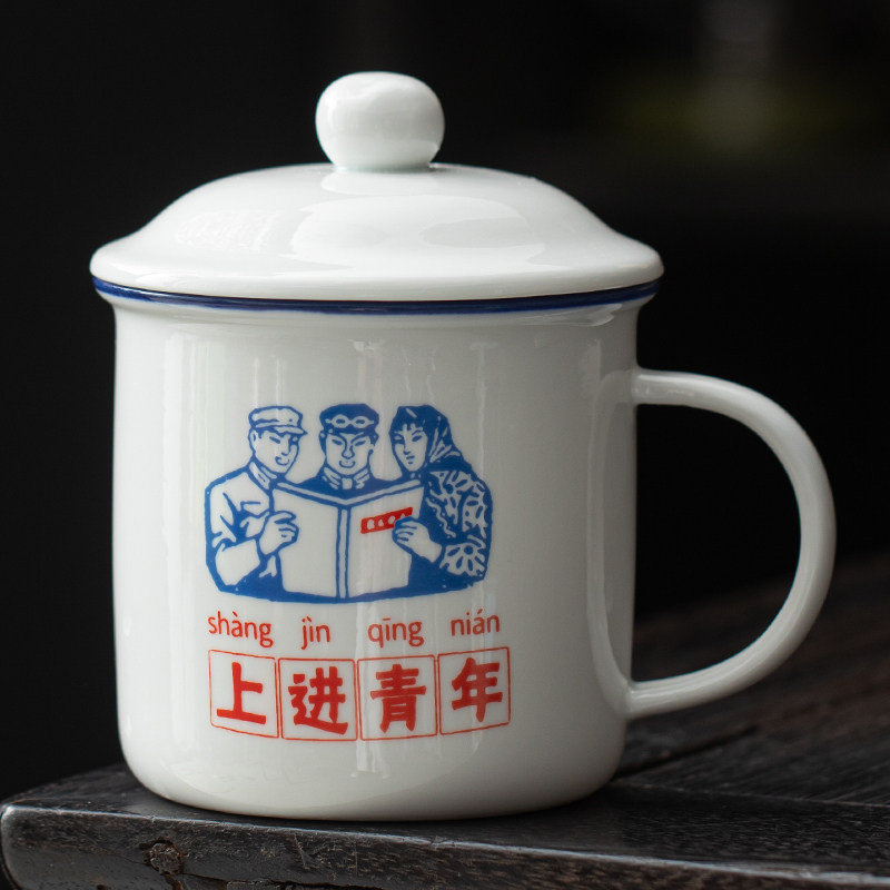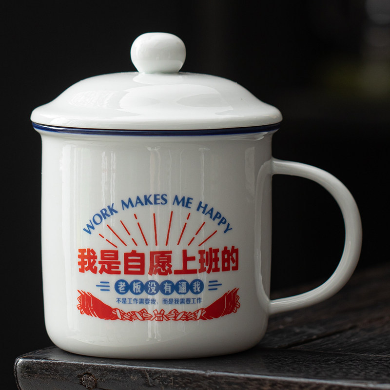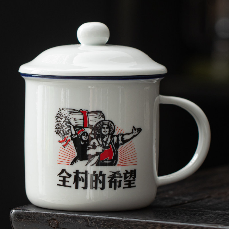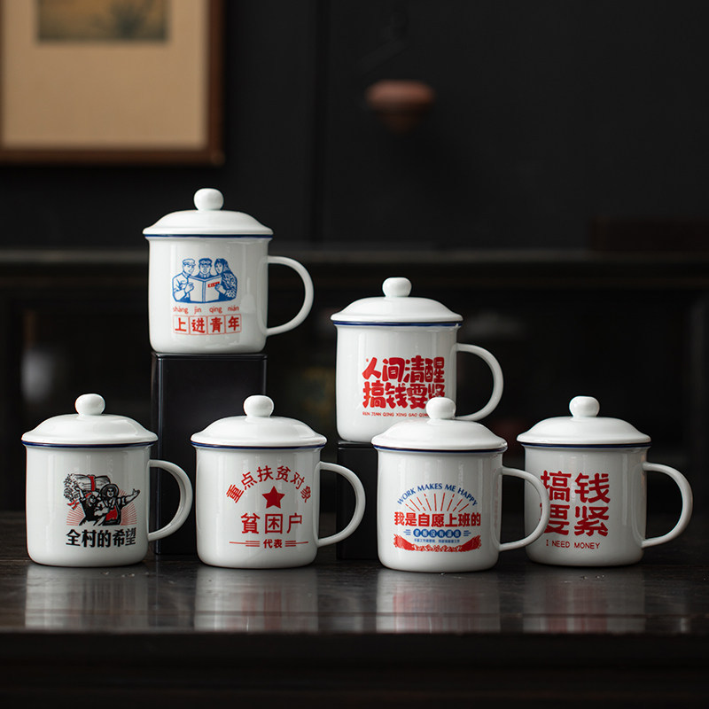 仿搪瓷杯怀旧经典带盖陶瓷马克杯男生水杯子加厚老式茶缸子