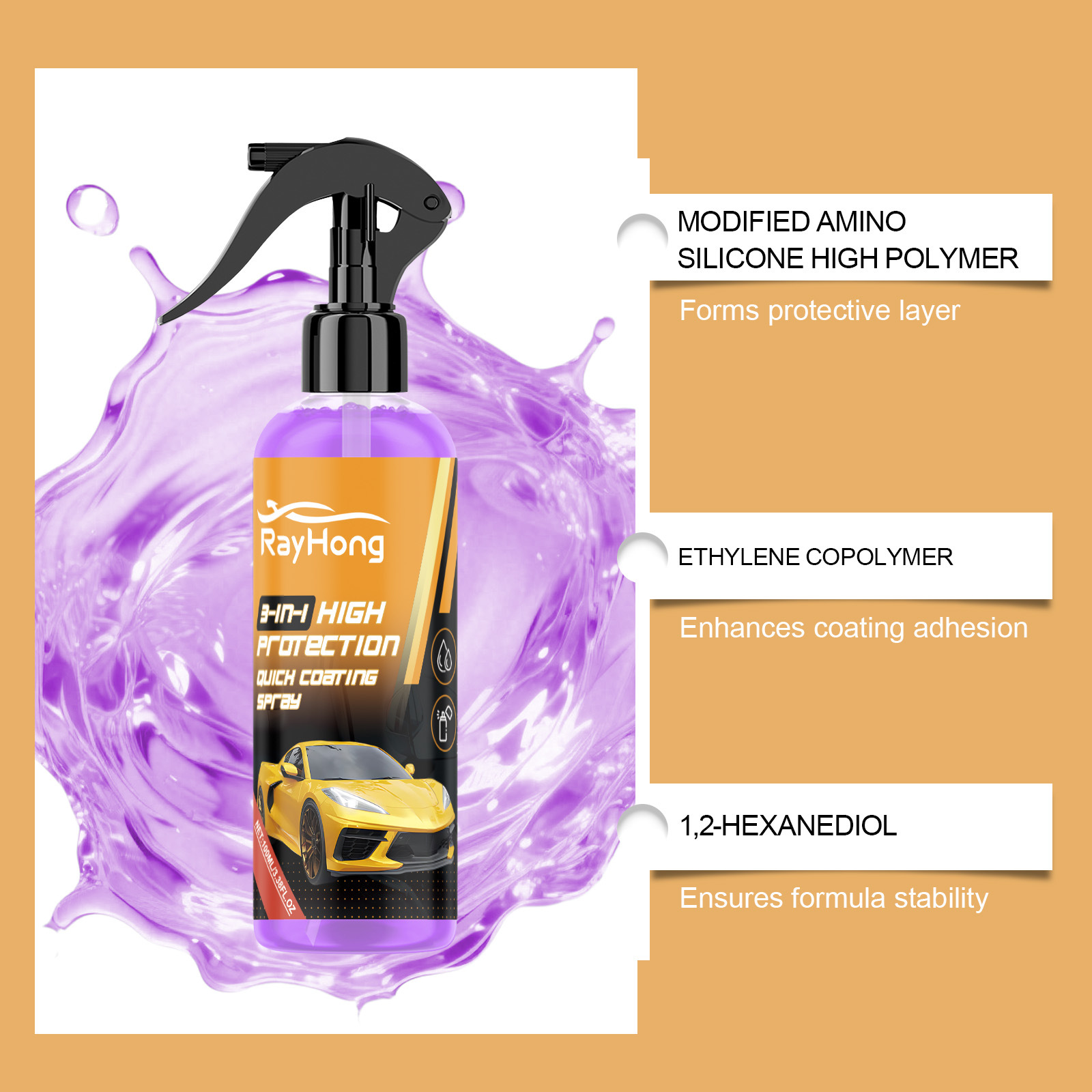 RAYHONG 汽车涂层喷雾 清洁漆面车漆镀膜剂光泽增亮翻新护理喷雾