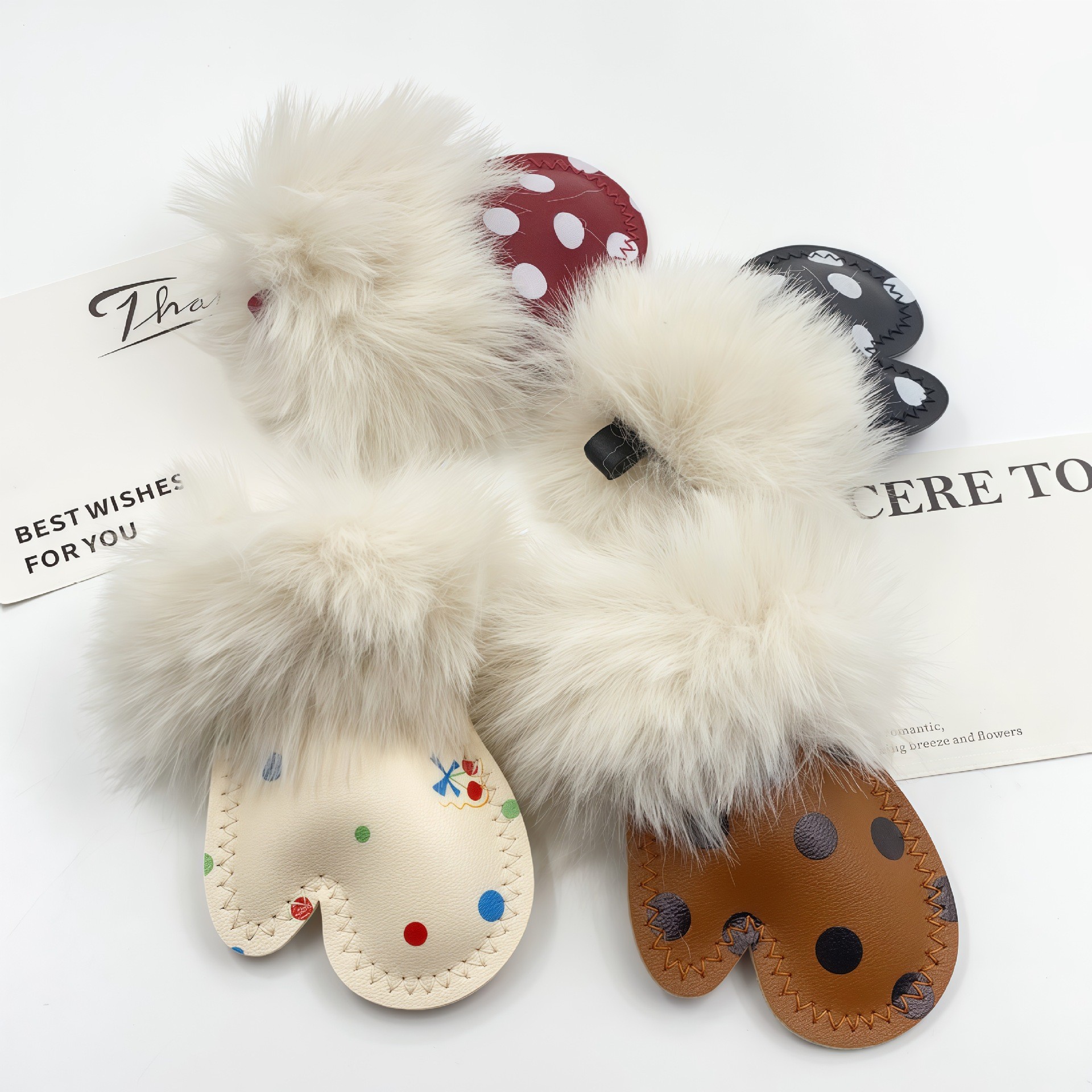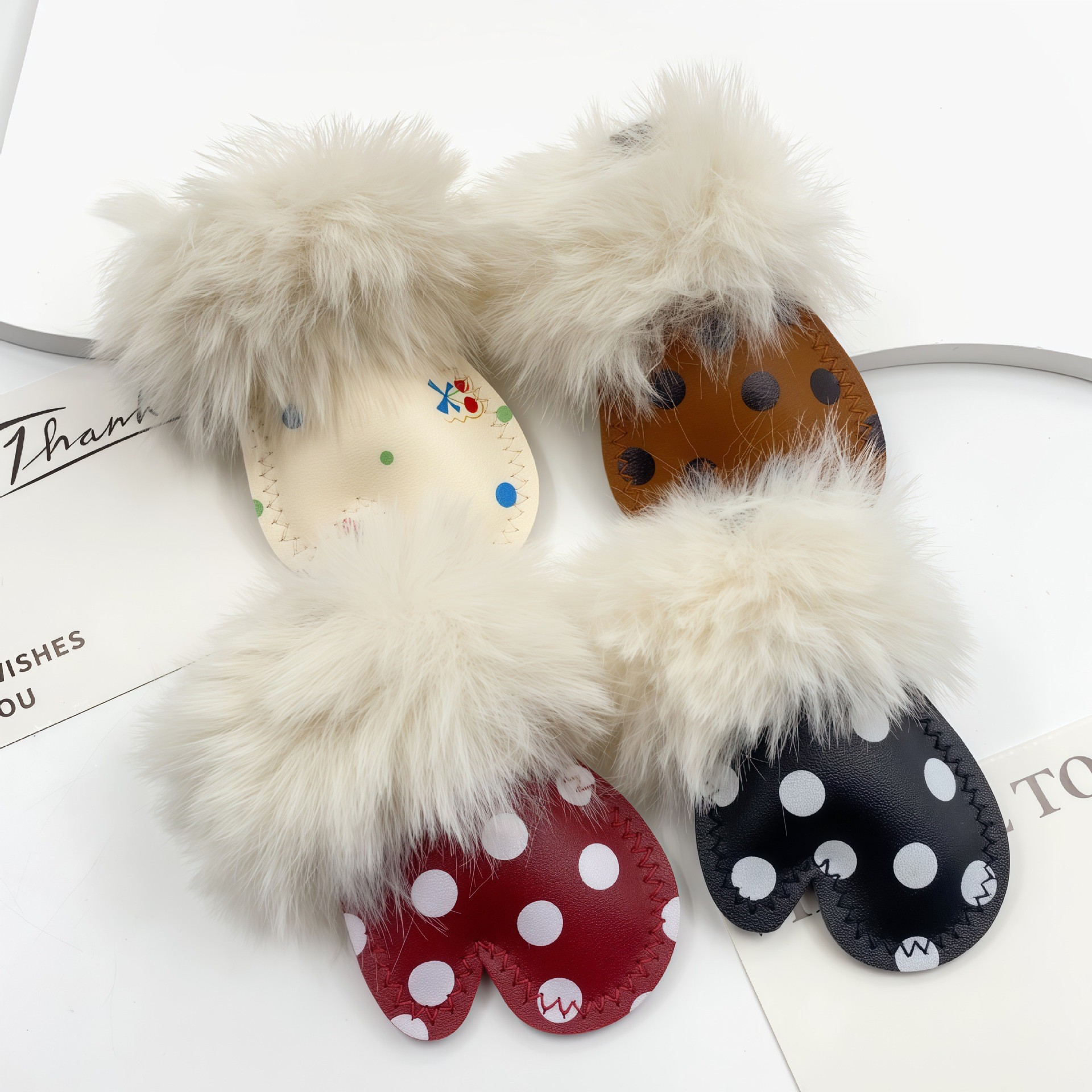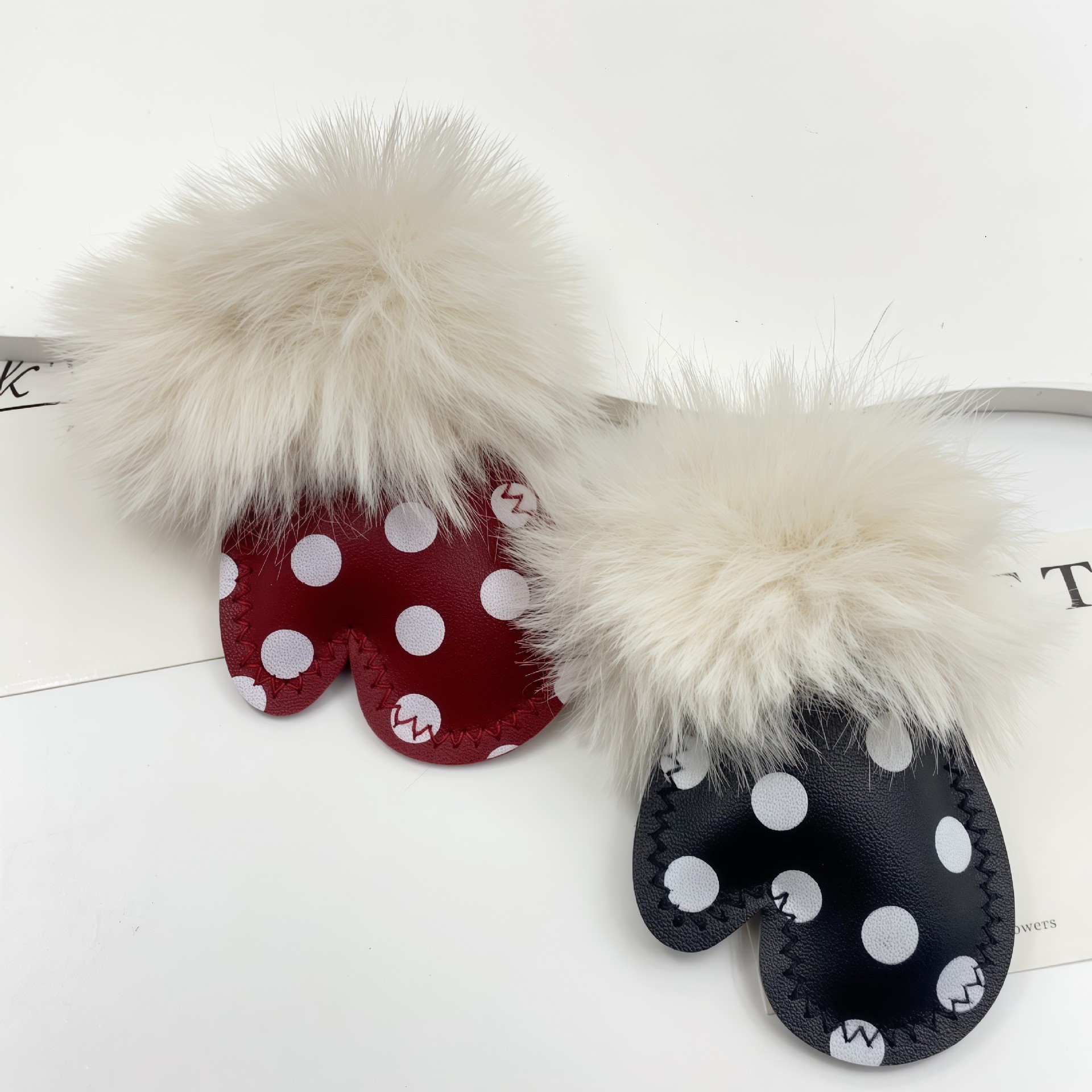 秋冬新款ins百搭毛绒波点皮革手套包包挂件挂饰DIY钥匙扣饰品配件