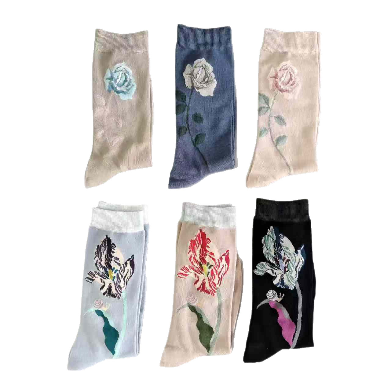 袜子女韩版长筒袜ins潮百搭秋冬彩色花卉中筒袜日系可爱风学生袜