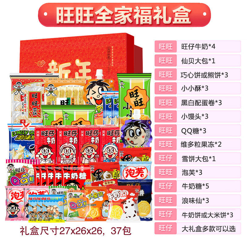 | 包装规格 | 旺旺礼盒装-39包-大旺礼盒 | 包装规格 | 旺旺缤纷50包礼盒--马年大吉礼盒 |