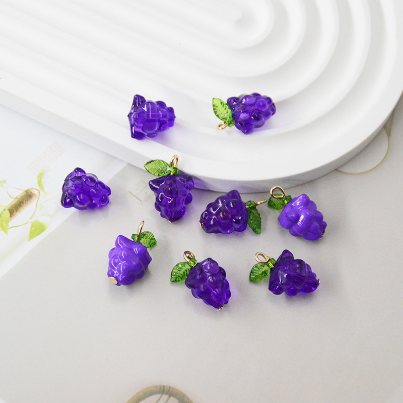 紫色葡萄diy饰品配件百搭小巧绿叶手工葡萄耳饰吊坠水果挂件精致