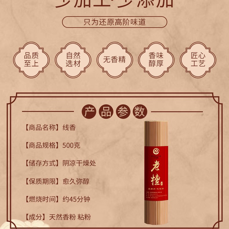 老檀500克檀香沉香线香礼佛家用健康纯正香气高阶品质甄选佳品