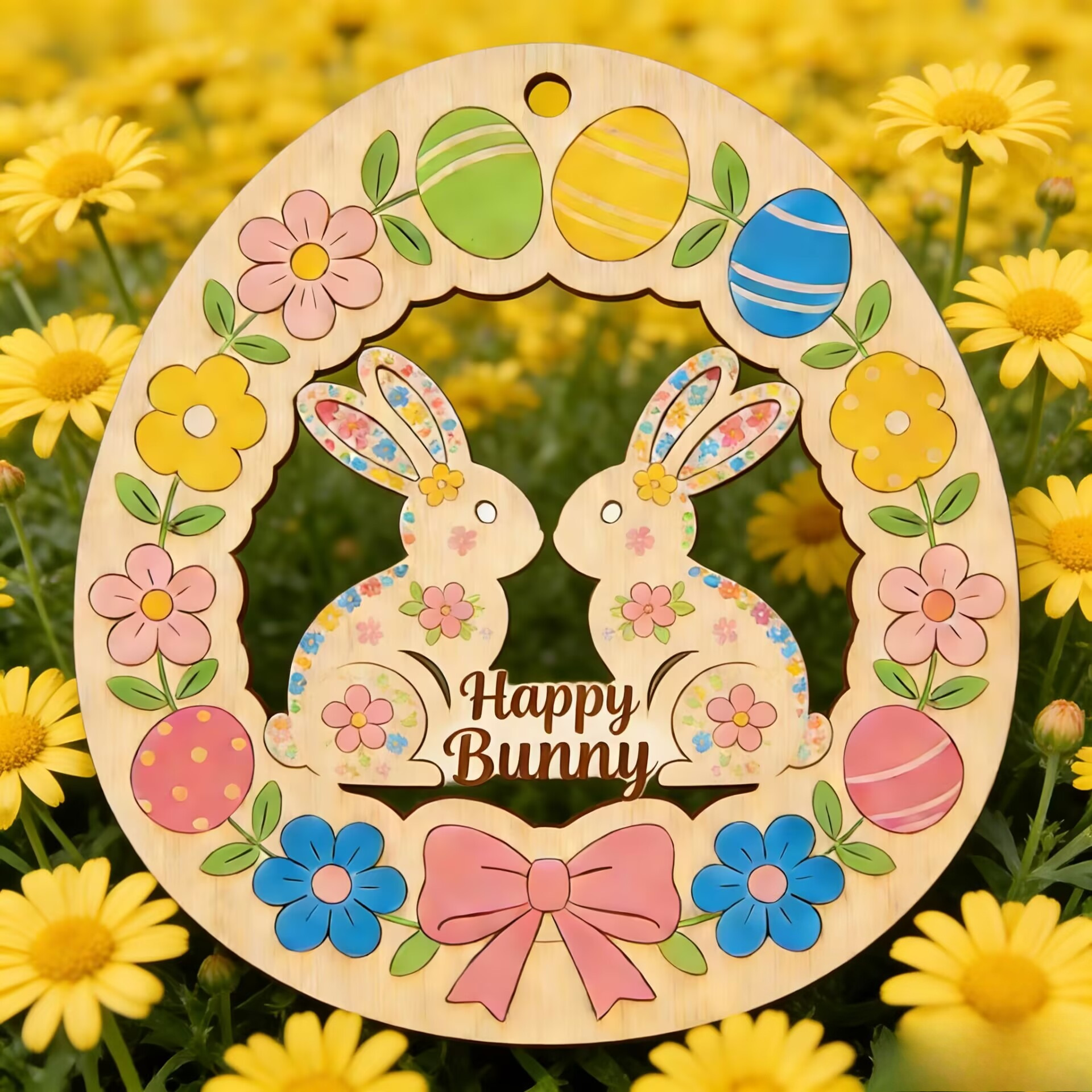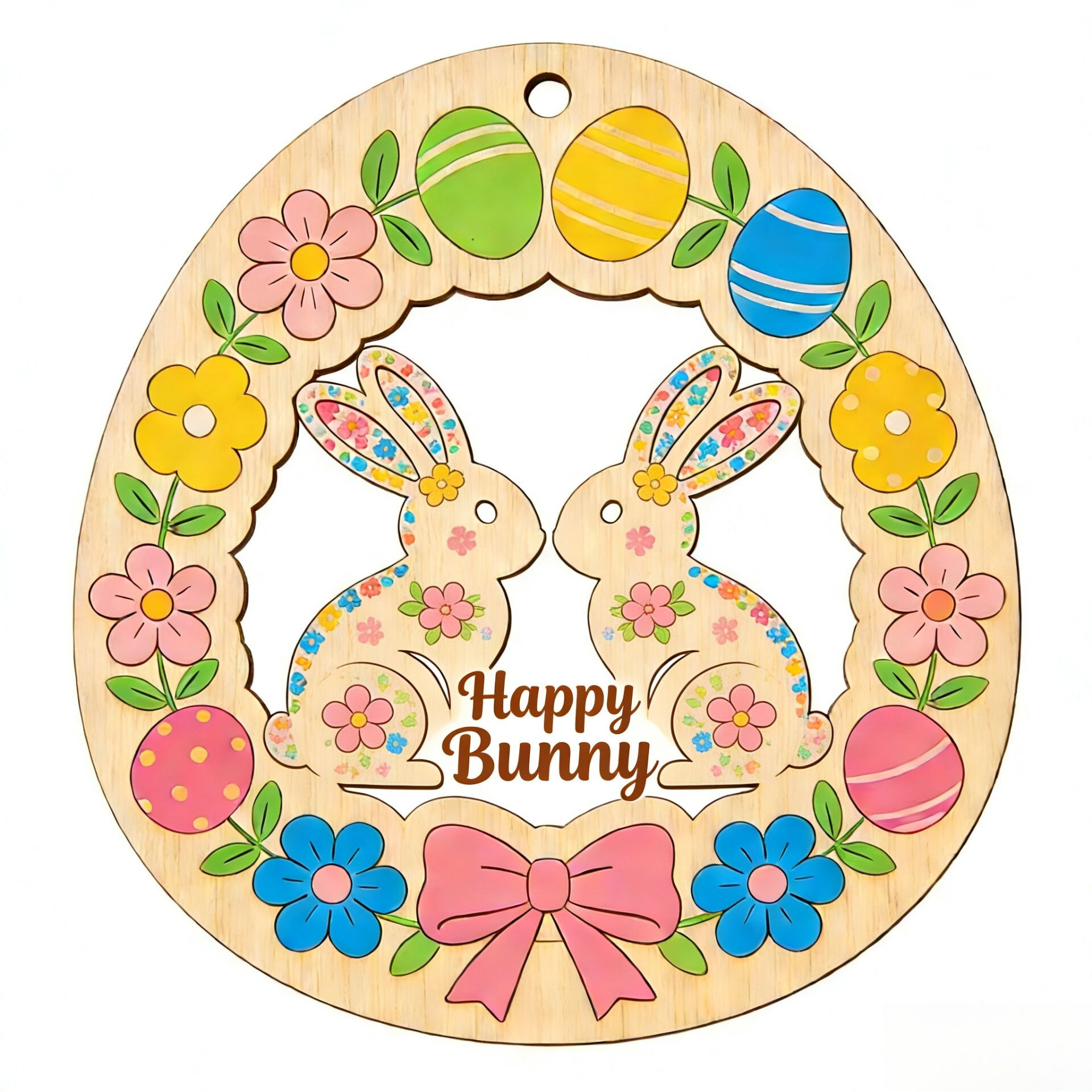 跨境创意美式兔子彩蛋木质挂牌复活节欢迎牌家居派对聚会装饰门牌