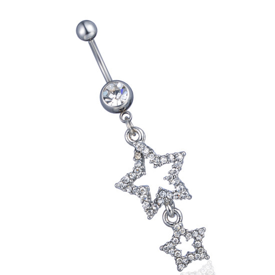 跨境欧美性感镶钻肚脐环五角星吊咀肚脐钉人体穿刺饰品