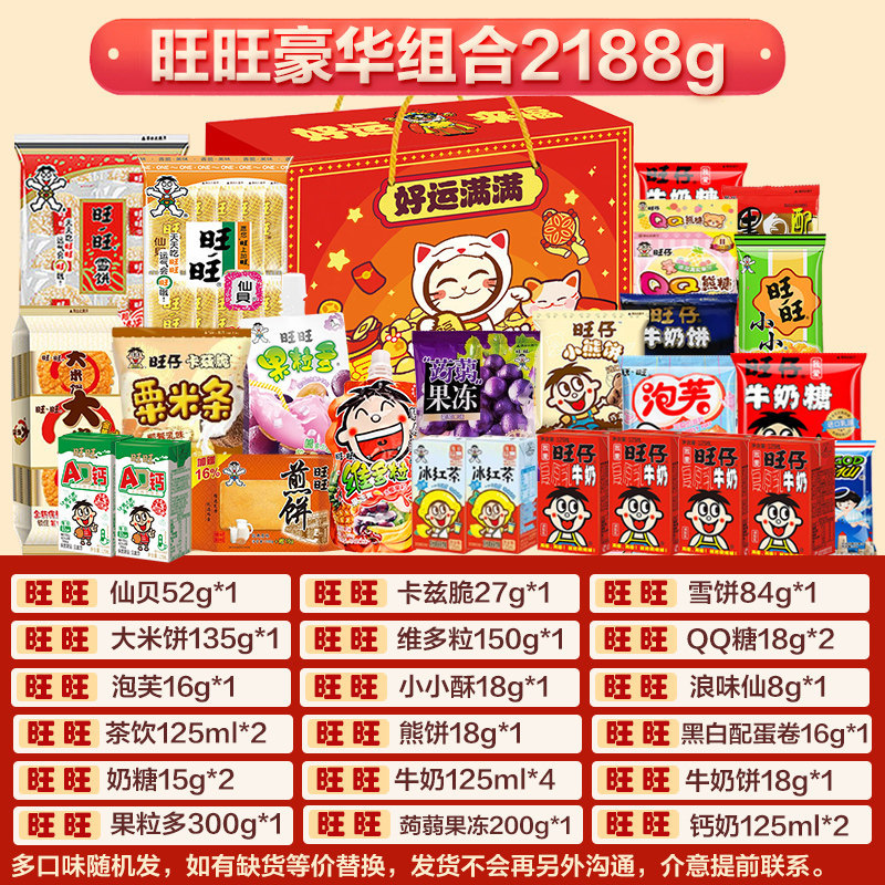 年货旺旺大礼包零食小吃旺仔休闲食品礼盒超大礼袋新年春节送礼品