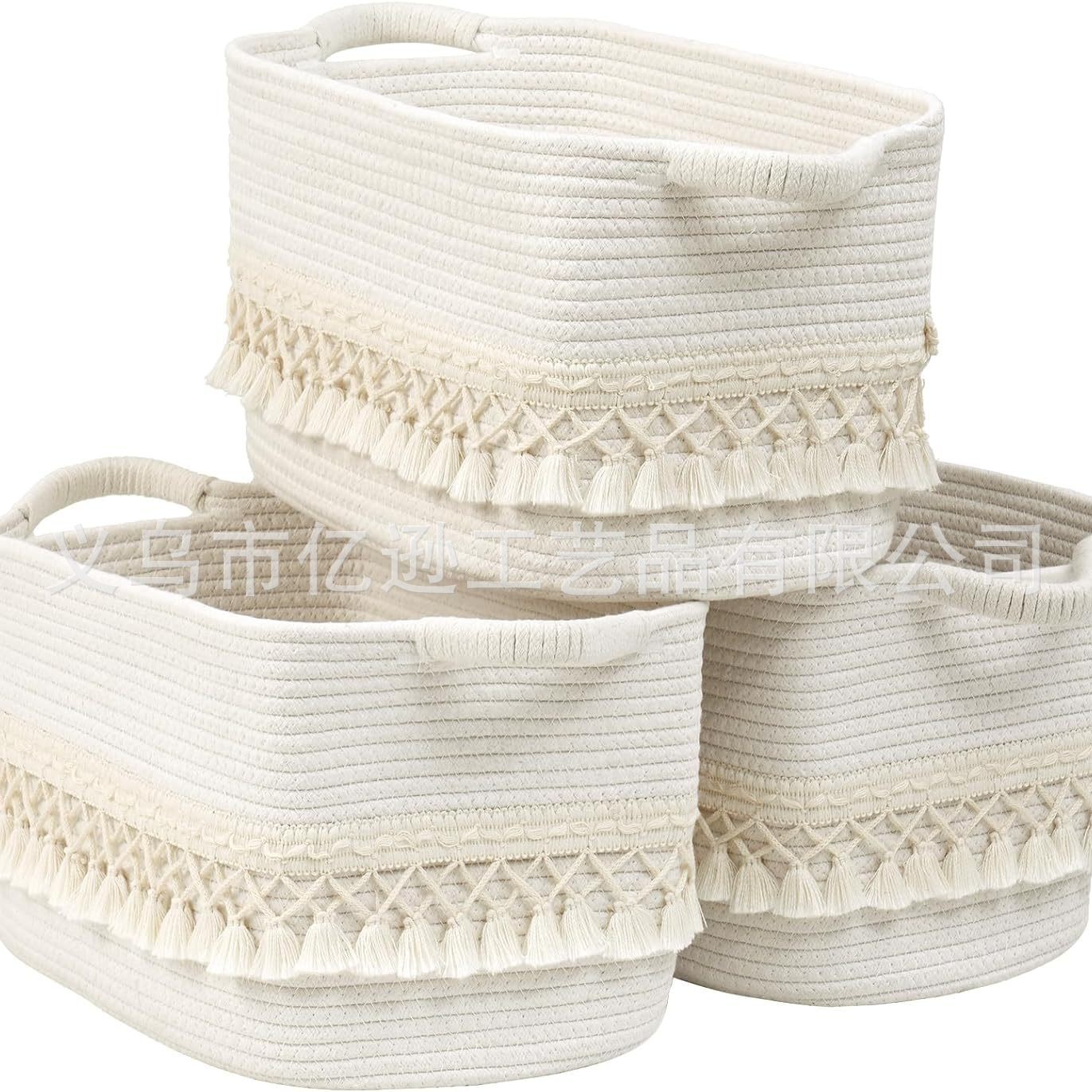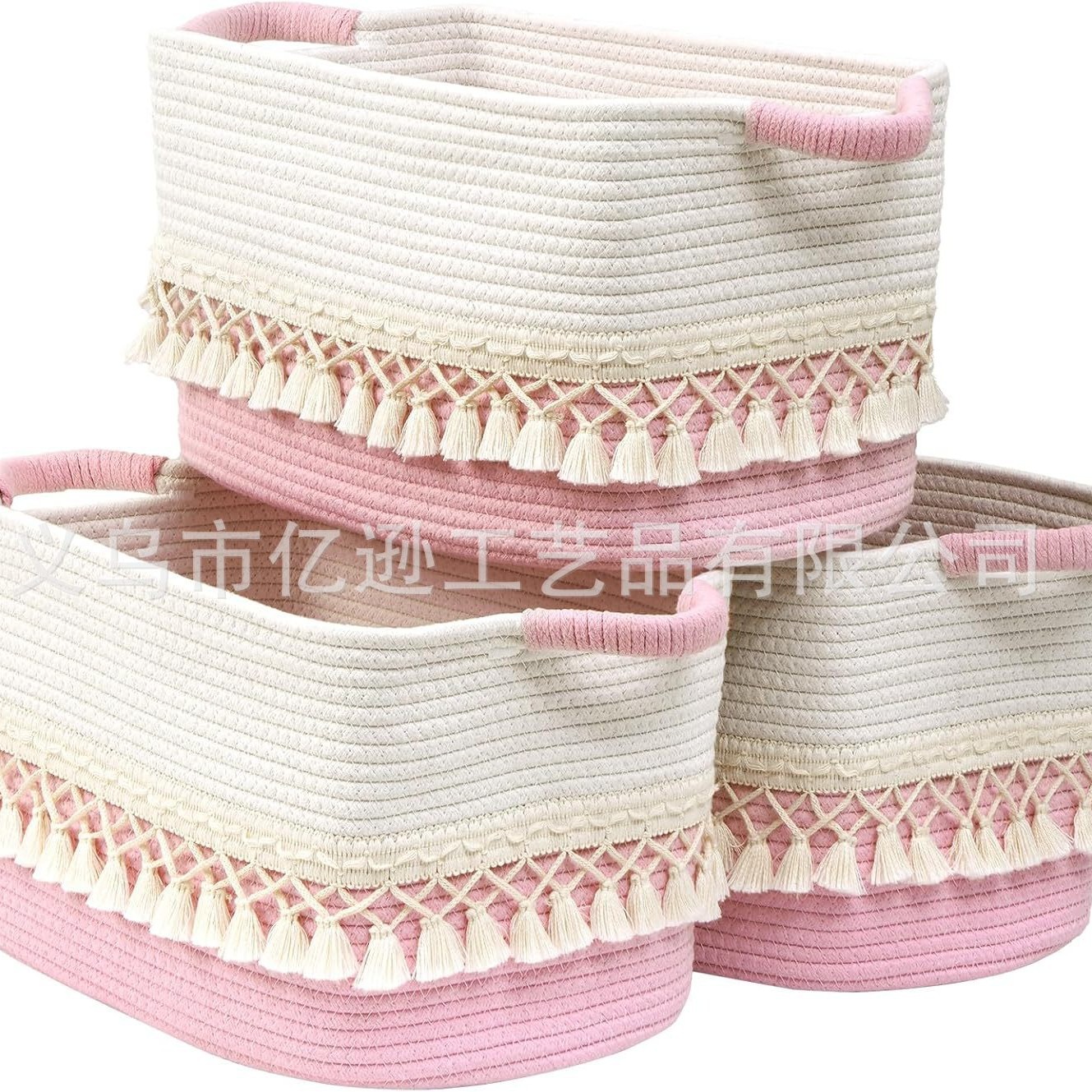 工厂波西米亚流苏棉绳篮客厅杂物收纳篮儿童玩具书本收纳筐置物篮