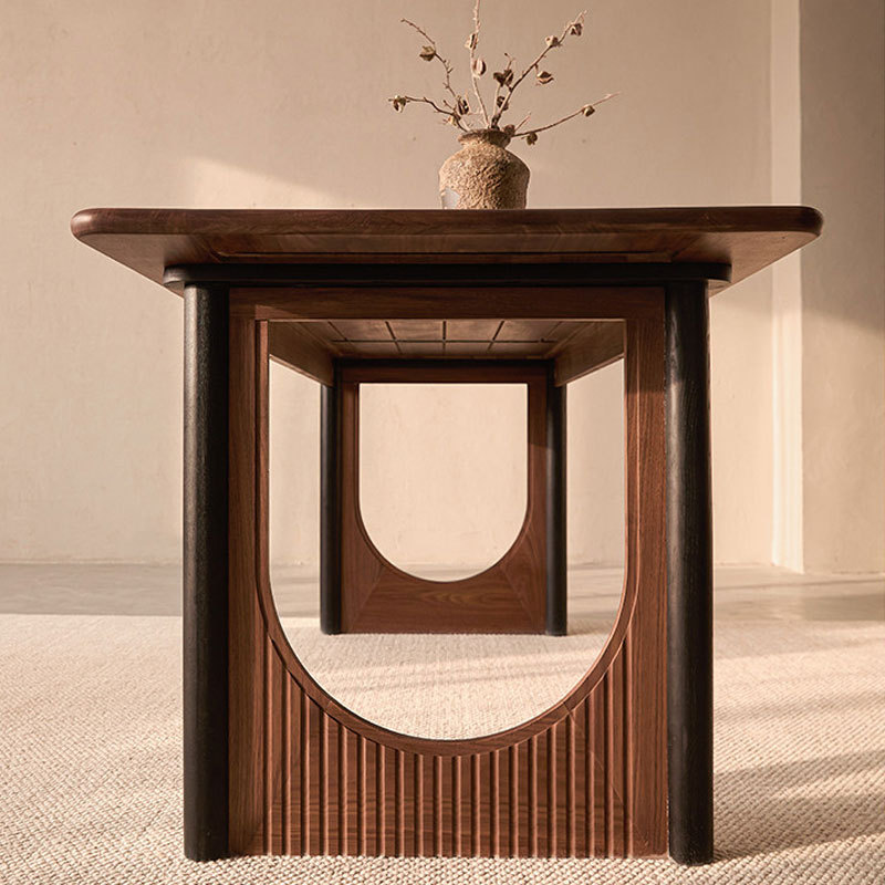 北美黑胡桃木实木餐桌北欧简约复古撞色餐厅饭桌高级感工作台