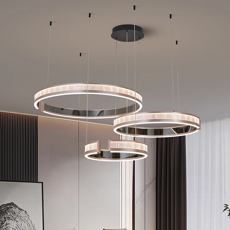 客厅吊灯意式轻奢设计师感2026新款水晶感圆环简约餐厅主灯具