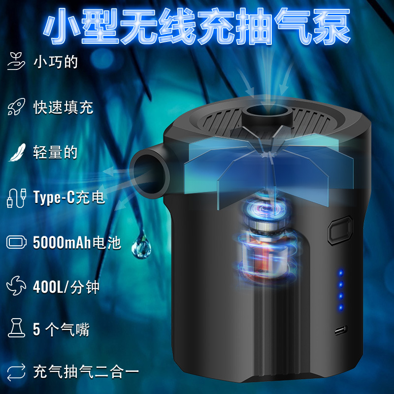 5000mAh内置电源USB打气筒气垫泳圈充气无线电动充户外充气泵便携