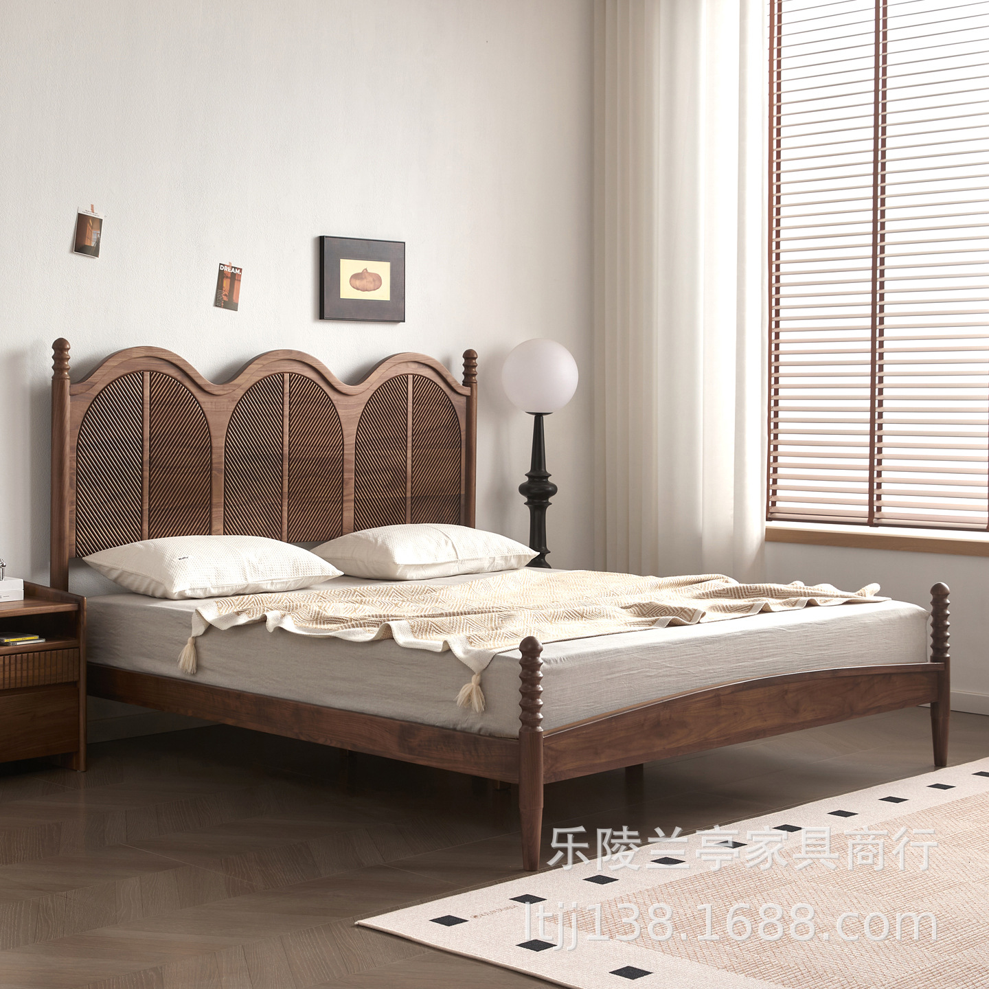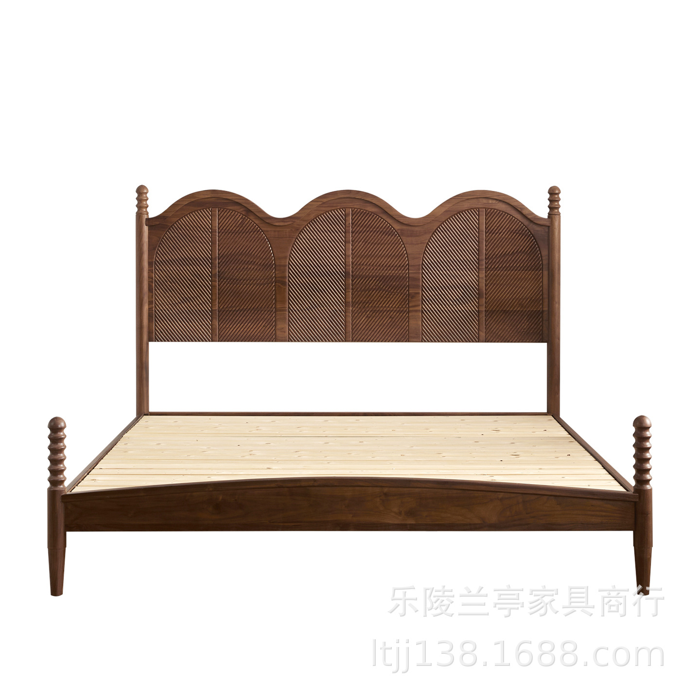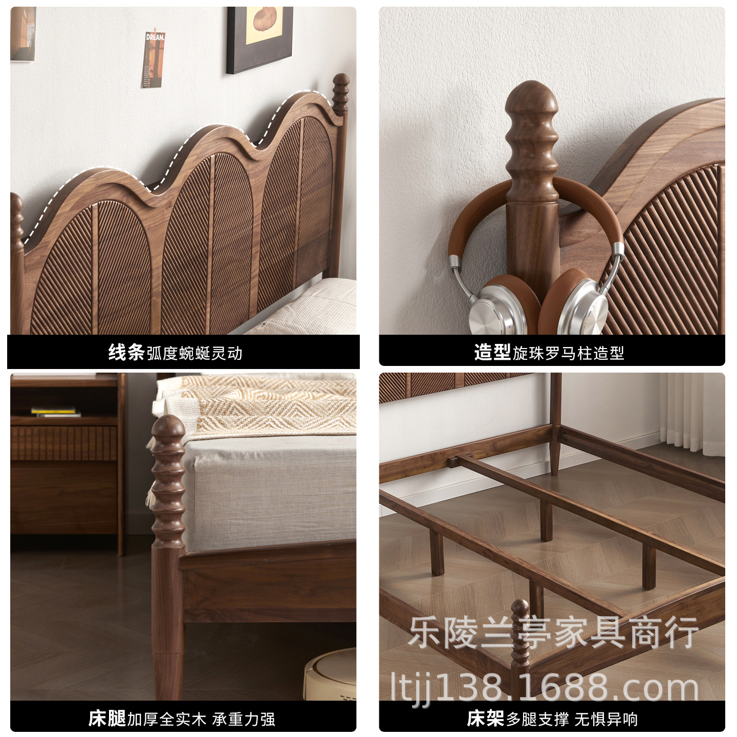 北美黑胡桃木实木床法式中古风1.8m主卧床双人床北欧简约2025新款
