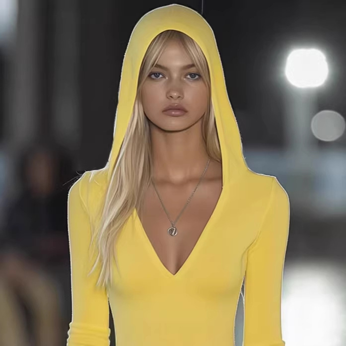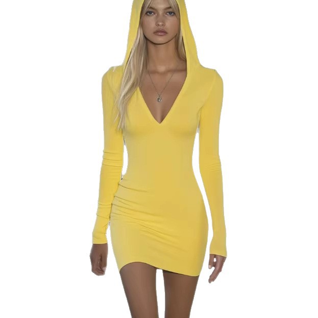欧美2026新款跨境休闲时尚修身连帽T恤迷你连衣裙亚马亚马逊爆款