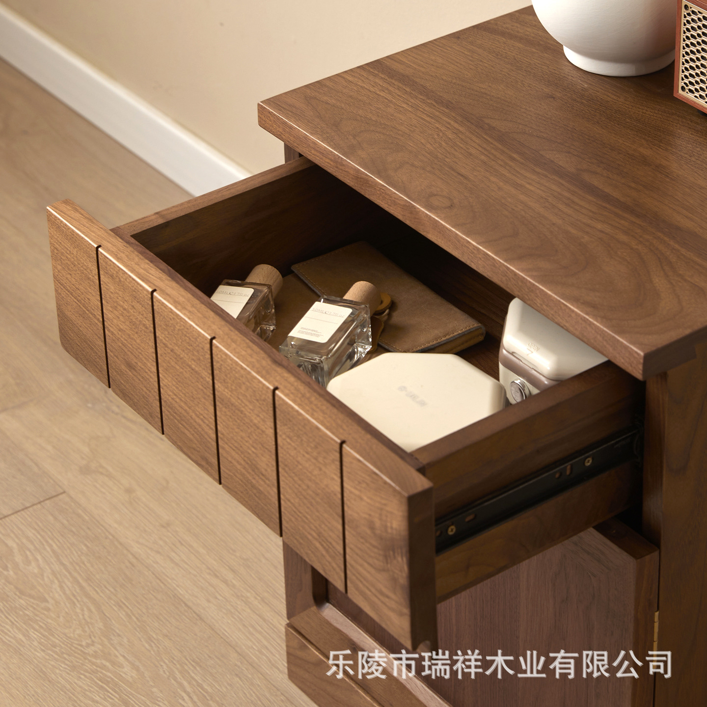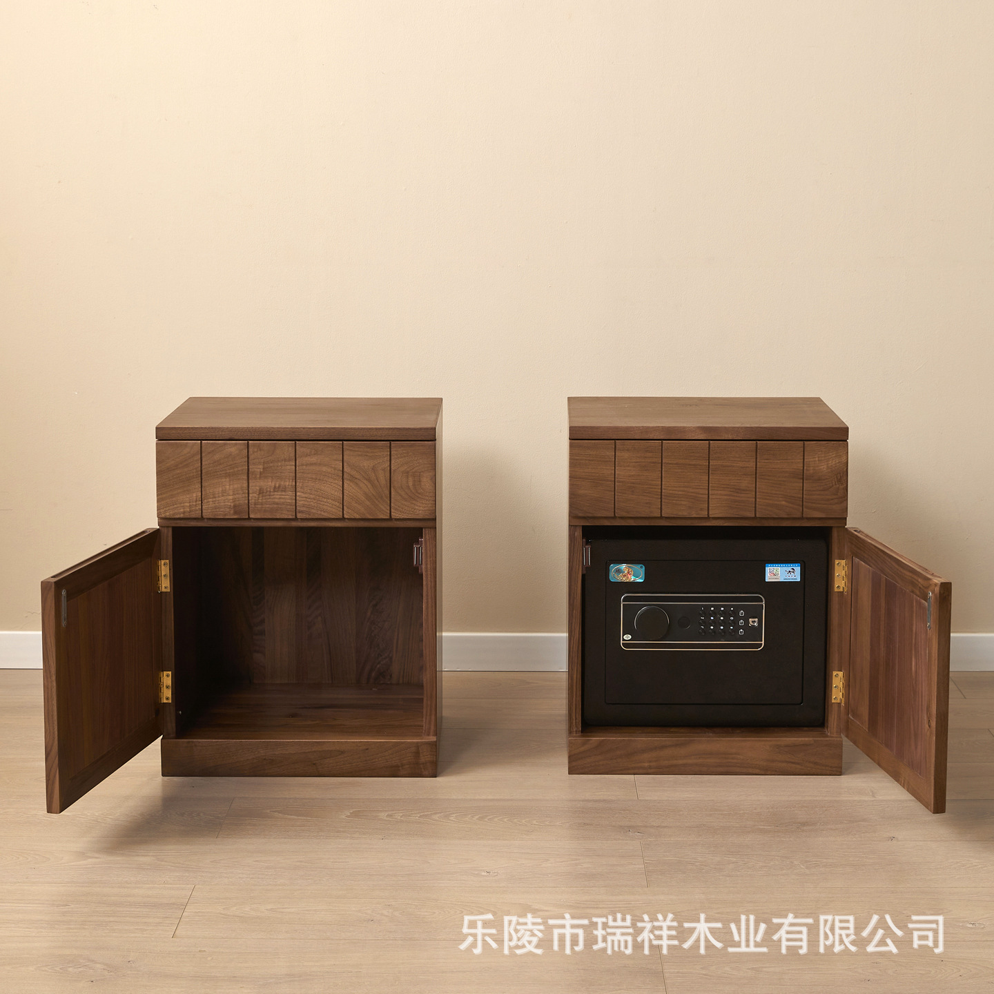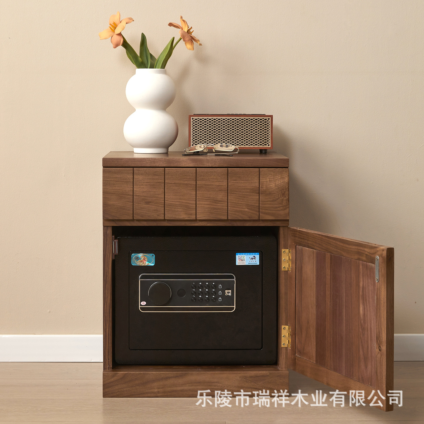 黑胡桃木床头柜保险箱一体储物柜小型家用防盗实木保险柜带密码锁