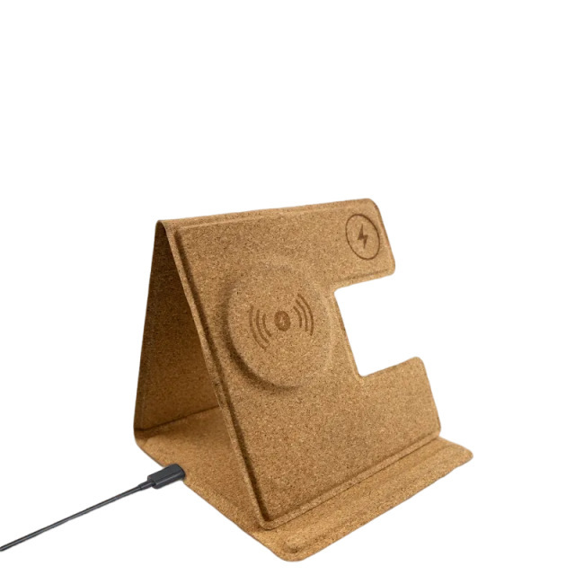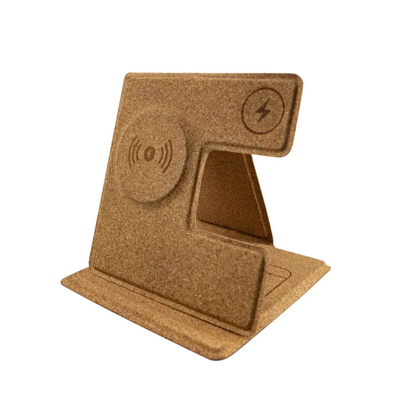 环保多功能三合一折叠15W软木材质无线充 再生循环RPET支架无线充