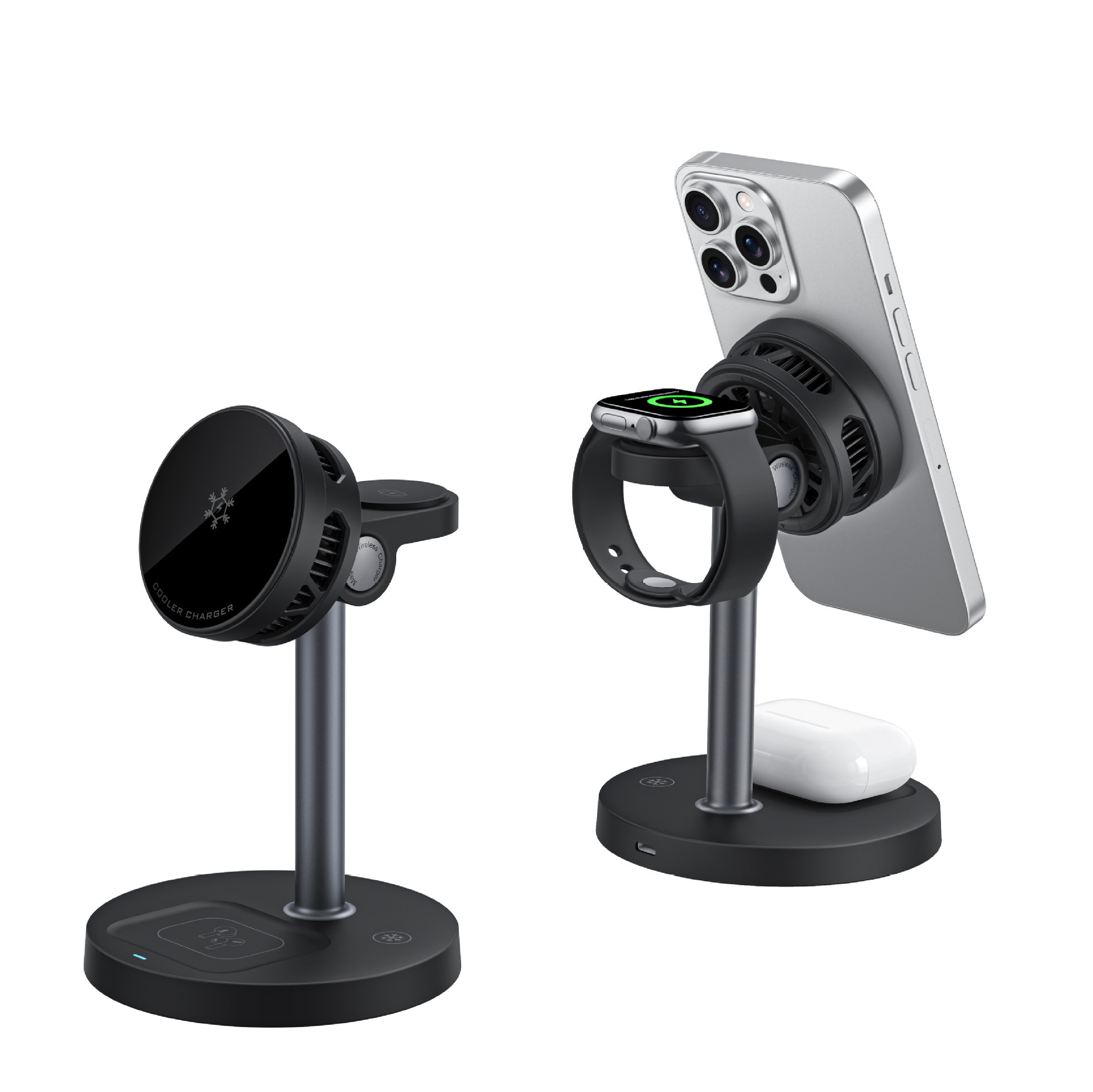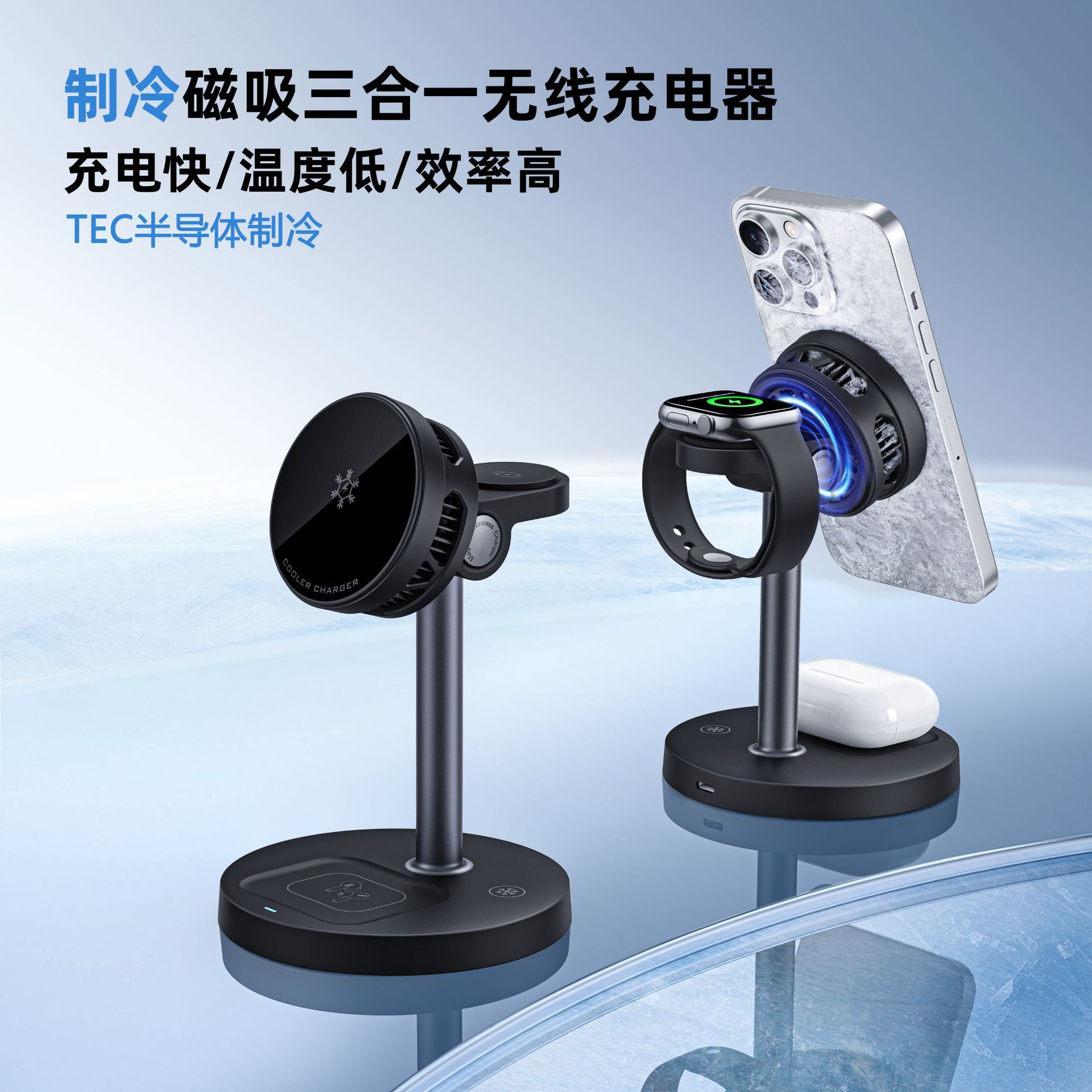 跨境无线充磁吸充电器半导体制冷手机15W快充三合一桌面充电快充