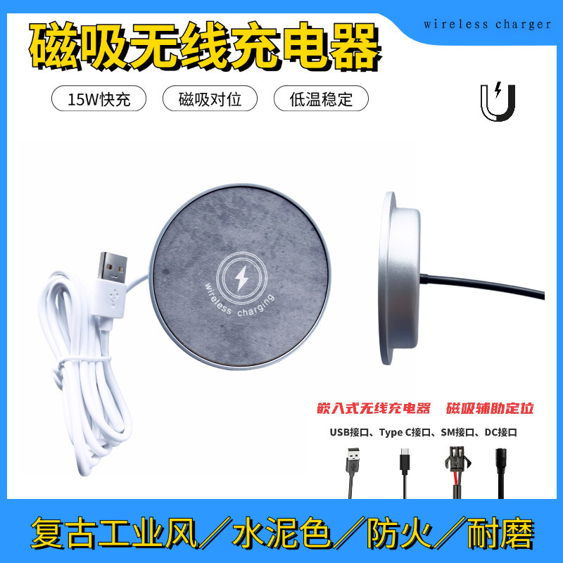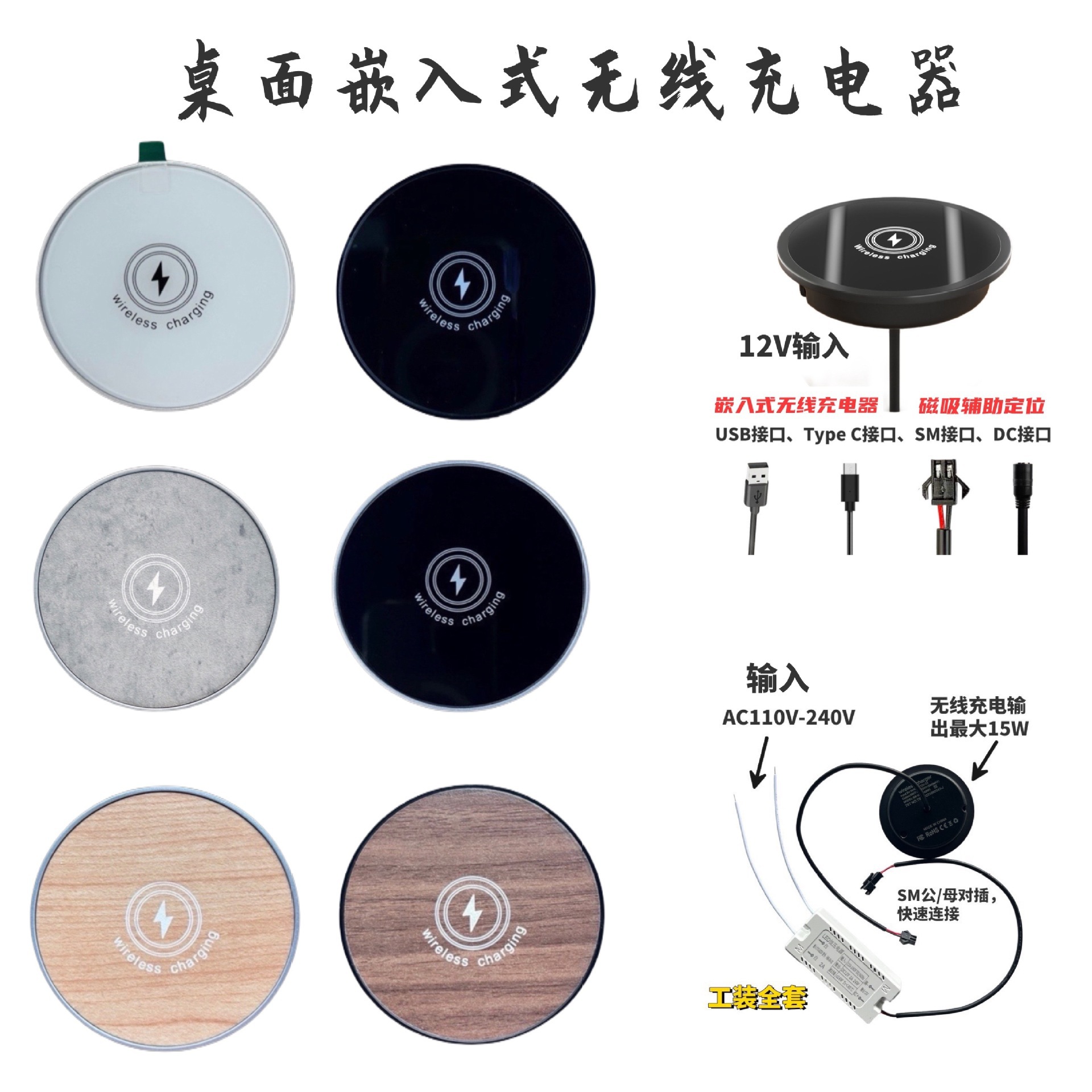 15W磁吸金属嵌入式手机无线充电器适用于家具酒店桌面床头柜工装