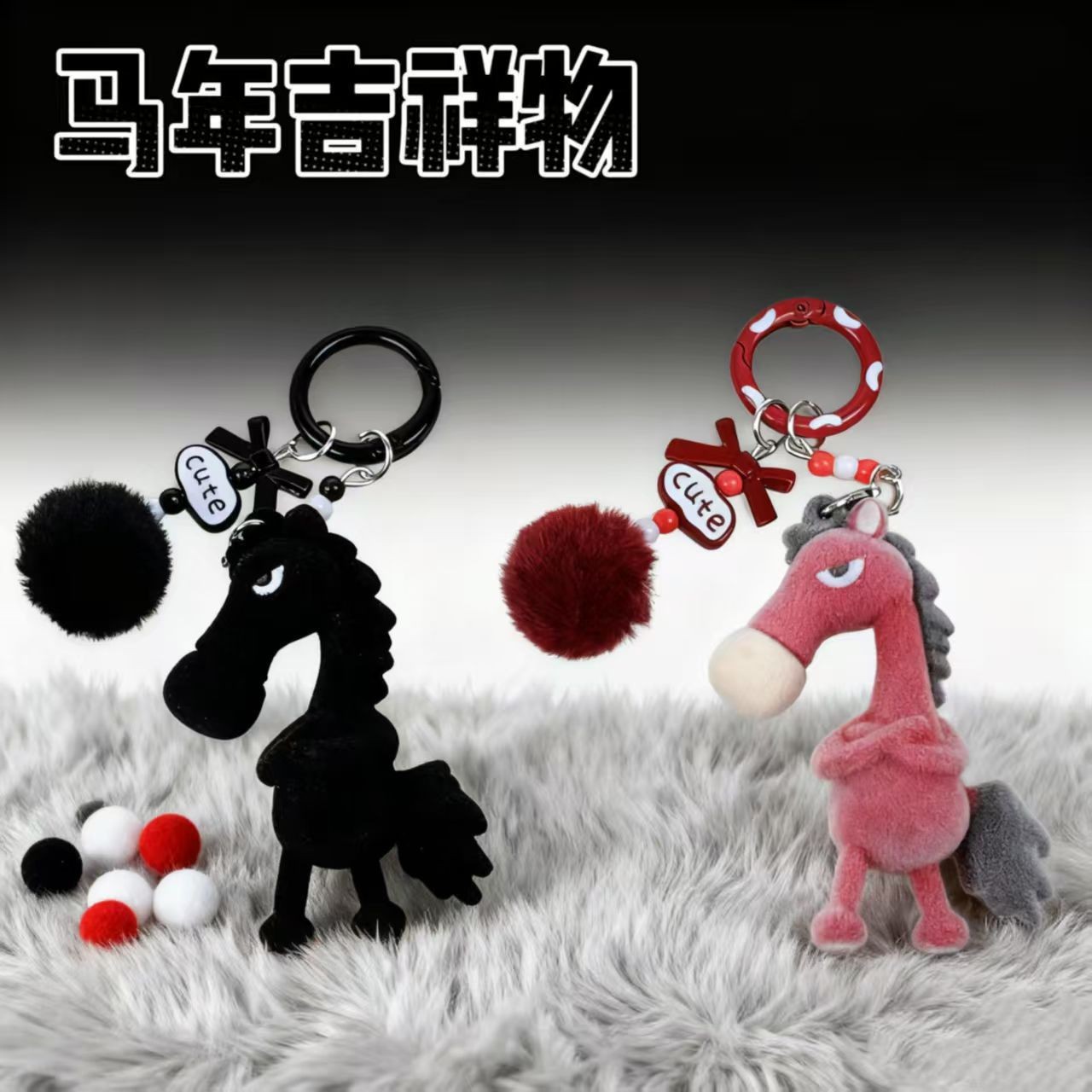 2026年马年天选黑马钥匙扣挂饰吉祥物高冷黑马玩偶公仔批发工厂