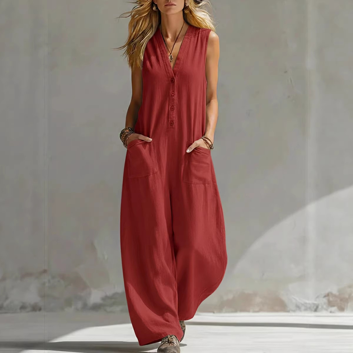 【厂家直供】欧美亚马逊独立站新款春夏女士休闲亚麻棉无袖连体裤