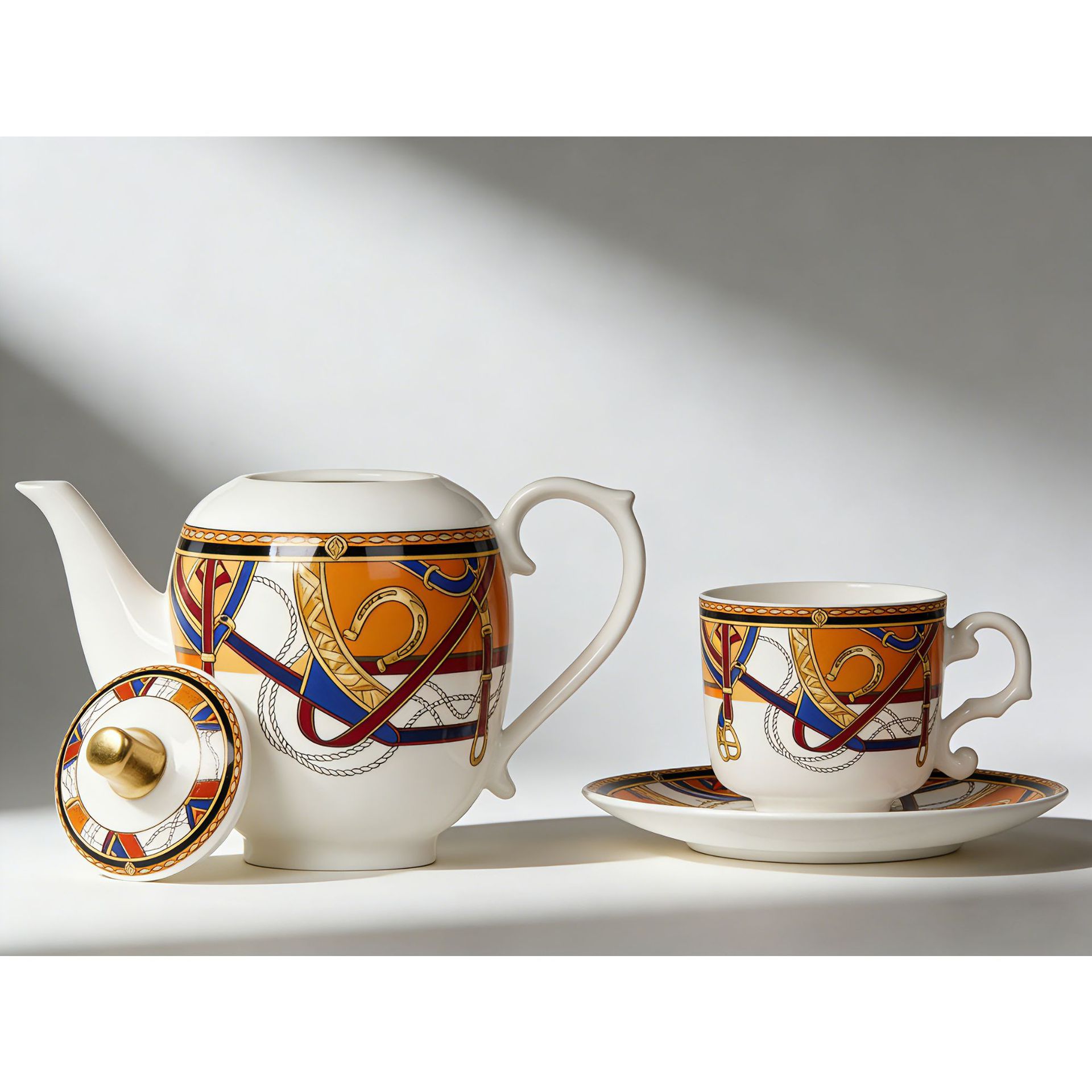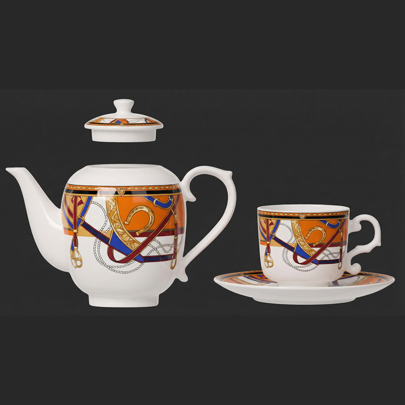 轻奢复古骏马意式浓缩咖啡杯碟小杯六件套陶瓷茶壶茶具下午茶套装