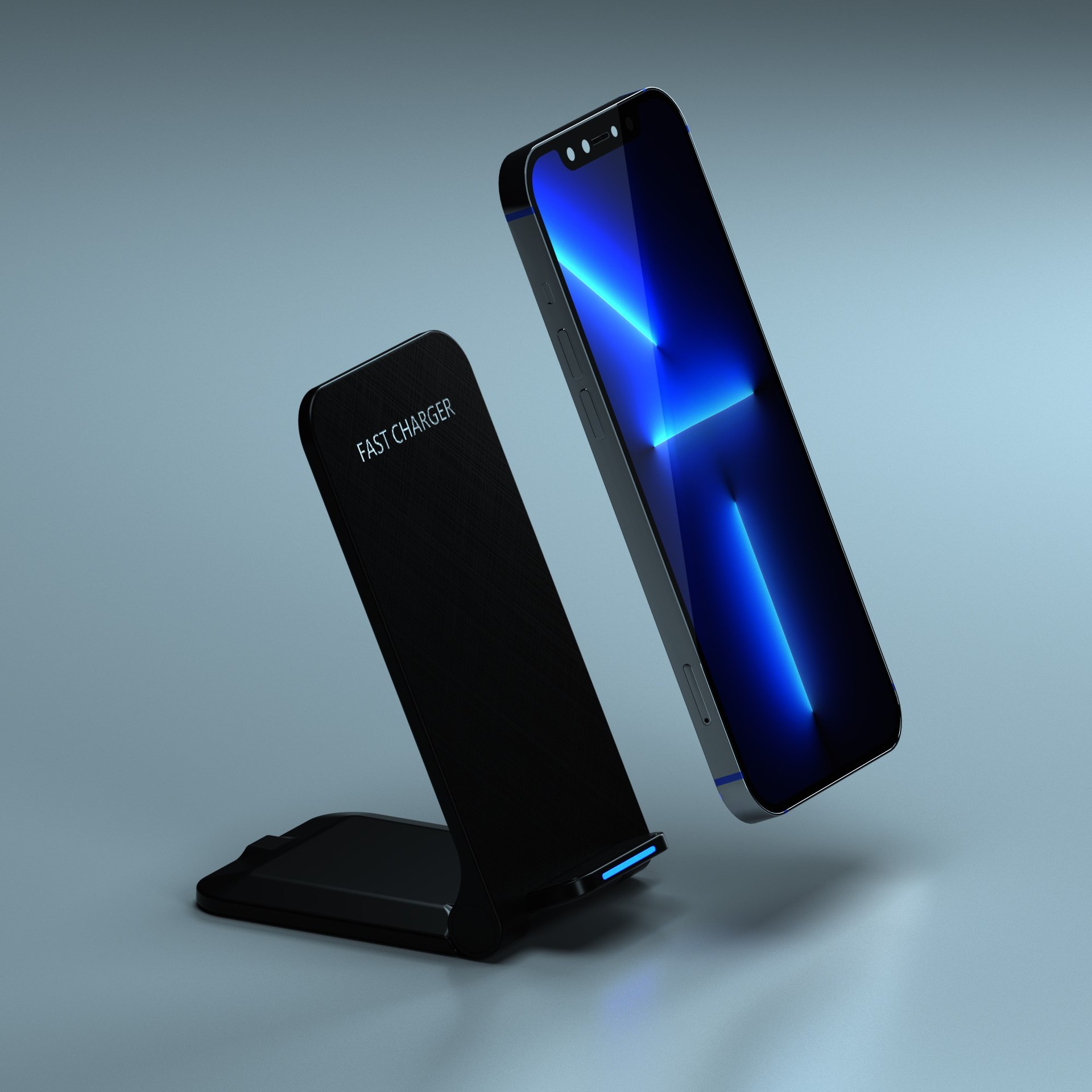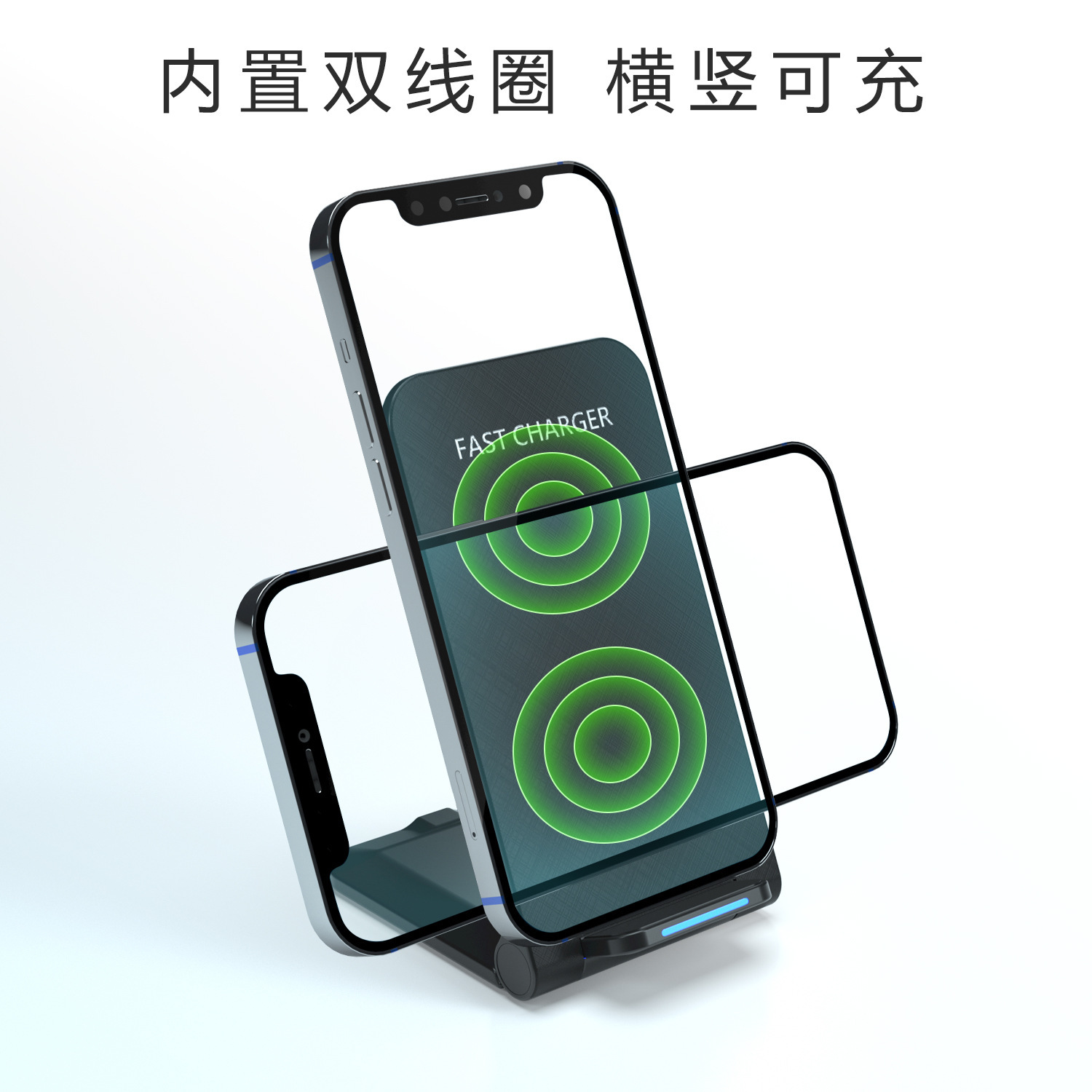 可折叠Q740无线充电器桌面手机支架双线圈横竖屏15W手机无线充电