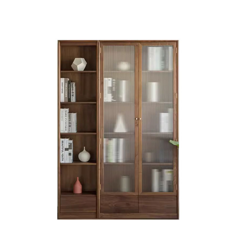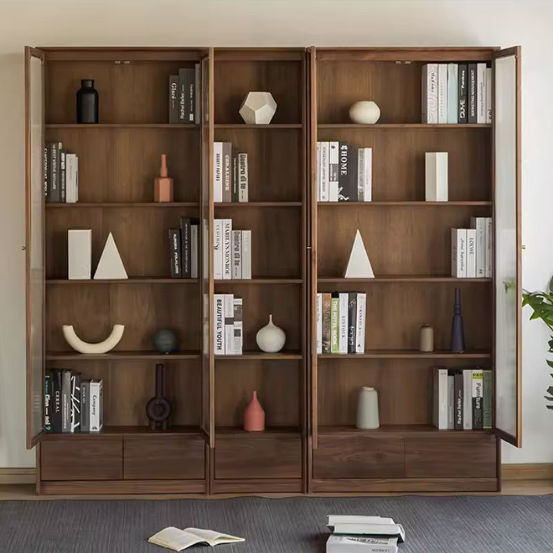 北美黑胡桃木组合书柜简约日式实木展示柜书房置物柜玻璃门收纳柜