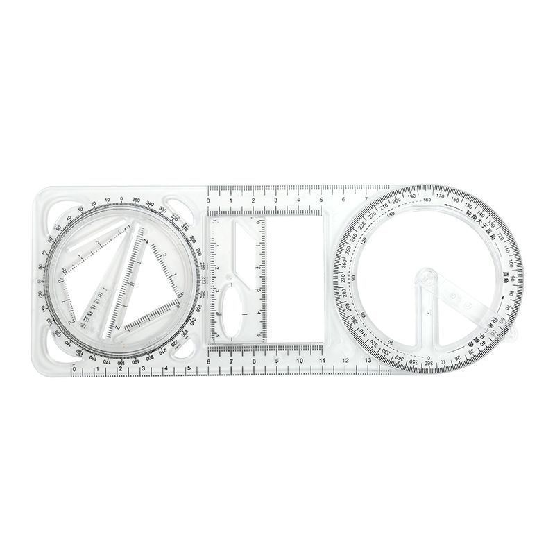 新款小学生透明多功能尺子几何图形绘图尺初高中生用可旋转绘图尺